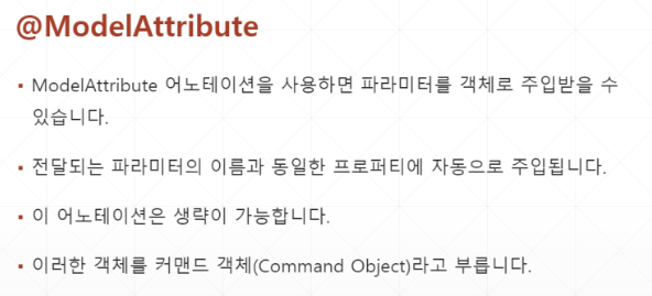 객체로 파라미터 주입받기(ModelAtrribute으로)