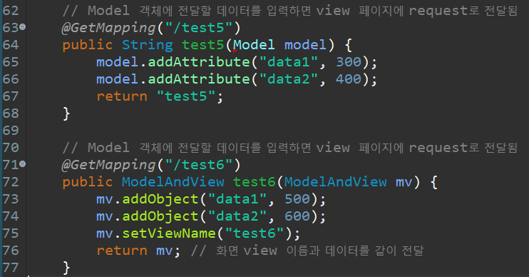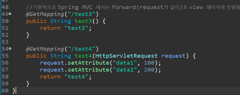 기본적으로 Spring MVC 에서는 forward(request가 같이)로 view 페이지에 전달됨