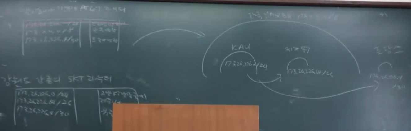 - 예) 항공대 본진: 고양 -> 173.26.226.0/24 (고양 kt)