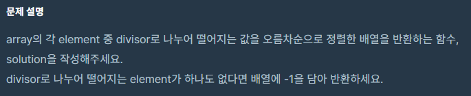 array읭 각 element 중 divisor로 나누어 떨어지는 값을 오름차순으로 정렬한 배열 반환하는 함수 만드는데 divisor로 나누어 덜어지는 element가 하나도 없다면 배열에 -1을 반환하라. 나는 이게 한 조건문인줄로 판단했다.