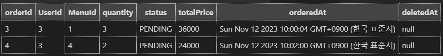 Orders 테이블에도 값이 잘 들어가는걸 확인할 수 있었다.
