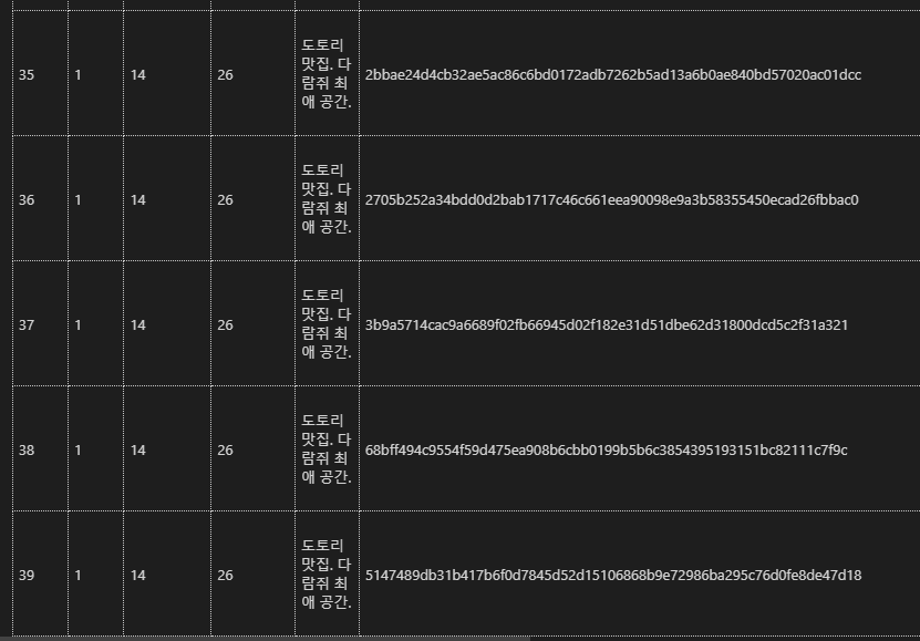 그랬더니 오류는 안나고 이런 결과가 반환되었다.