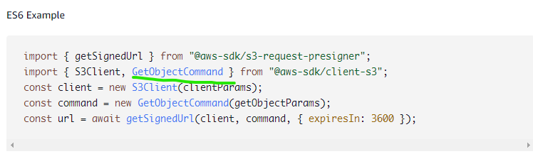 get요청하는 라이브러리는 @aws-sdk/s3-request-presigner 을 사용한다. 그래서 혹시나 내가 문법을 잘 못 사용했던걸까 싶어 문서를 찾아봤다.