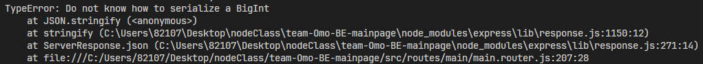 이 에러는 JSON.stringify ()에서 이 부분이 bigInt가 들어가서 발생한거란다.