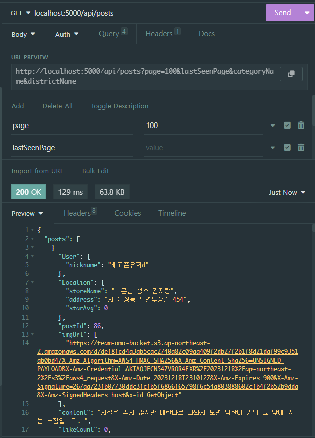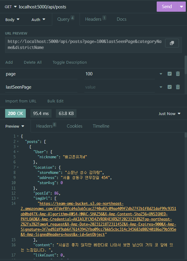 페이지네이션을 구현하려고 했다. 오프셋 페이지네이션의 경우 조회할 때 처음부터 데이터를 다 읽어와야하는 점과 중복된 게시글을 볼 수 있다는 점에서 아쉬운 점이 남는 방법이다. 그래서 커서 기반 페이지네이션을 구현하기로 했다. 처음에 cursor라는 개념을 알고 접근했으나 page, pageSize, cursor(오프셋과 혼동이 있었나봄)어딘가 복잡하고 어렵다는 생각이 들어 api를 실행하면서도 이게 맞나 확신이 들지 않았다.