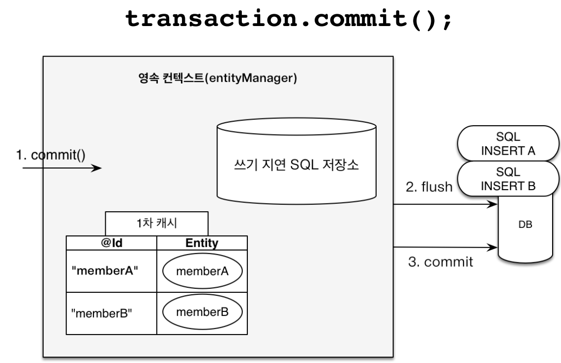 // 트랜잭션 커밋을 할 때 DB로 날라가는거임.