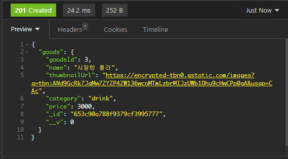 return res.status(201).json({ goods : createGoods })