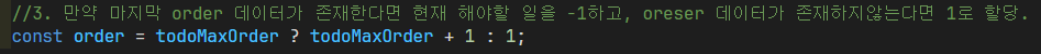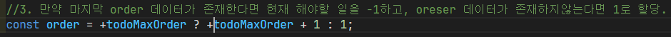 이 코드에서 todoMaxOrder 가 숫자가 아닐 수 있다는걸 말하는 듯 했다.