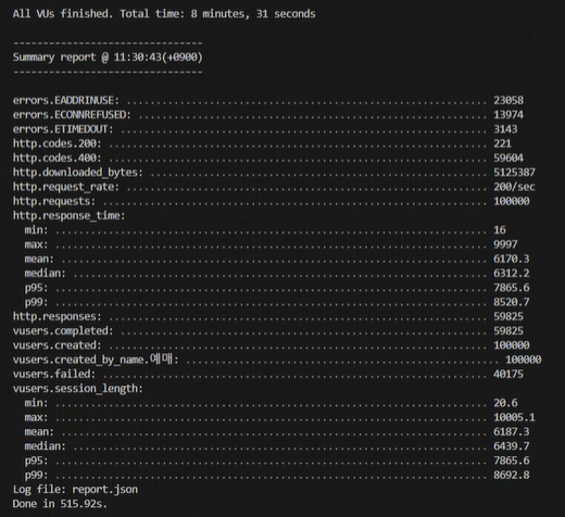 All VUs finished. Total time: 8 minutes, 31 seconds