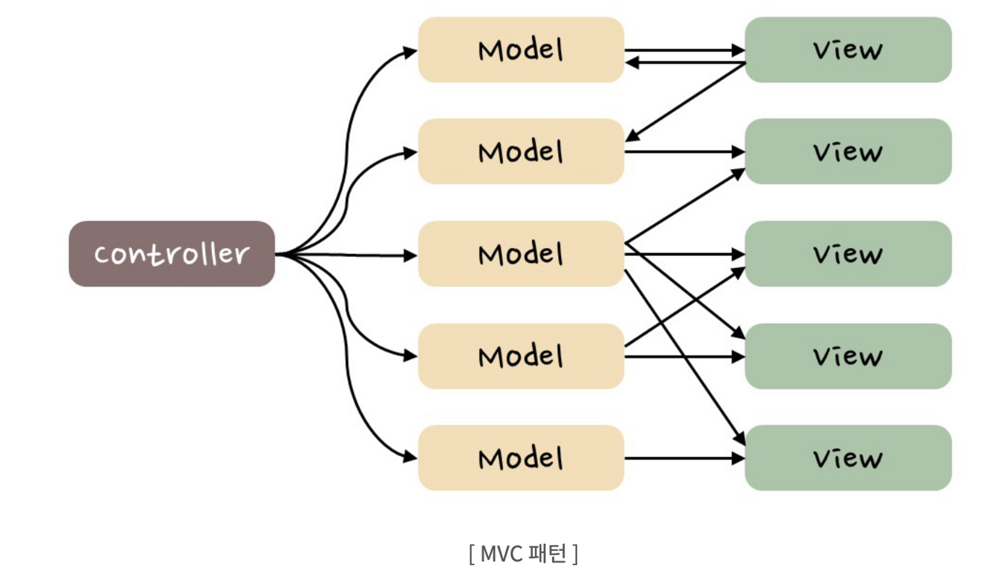 하지만 이렇게 구현된 프로젝트는 프로젝트의 규모가 커질수록 수많은 Model과 View가 생성되고, 이때 Model의 상태에 변화가 생길 경우 Model과 View 사이에 엄청난 양의 데이터가 양방향으로 전달되게 됩니다. 이로 인해 데이터의 흐름을 예측하기가 점점 힘들어지고, 수많은 버그를 발생시키는 원인이 됩니다.