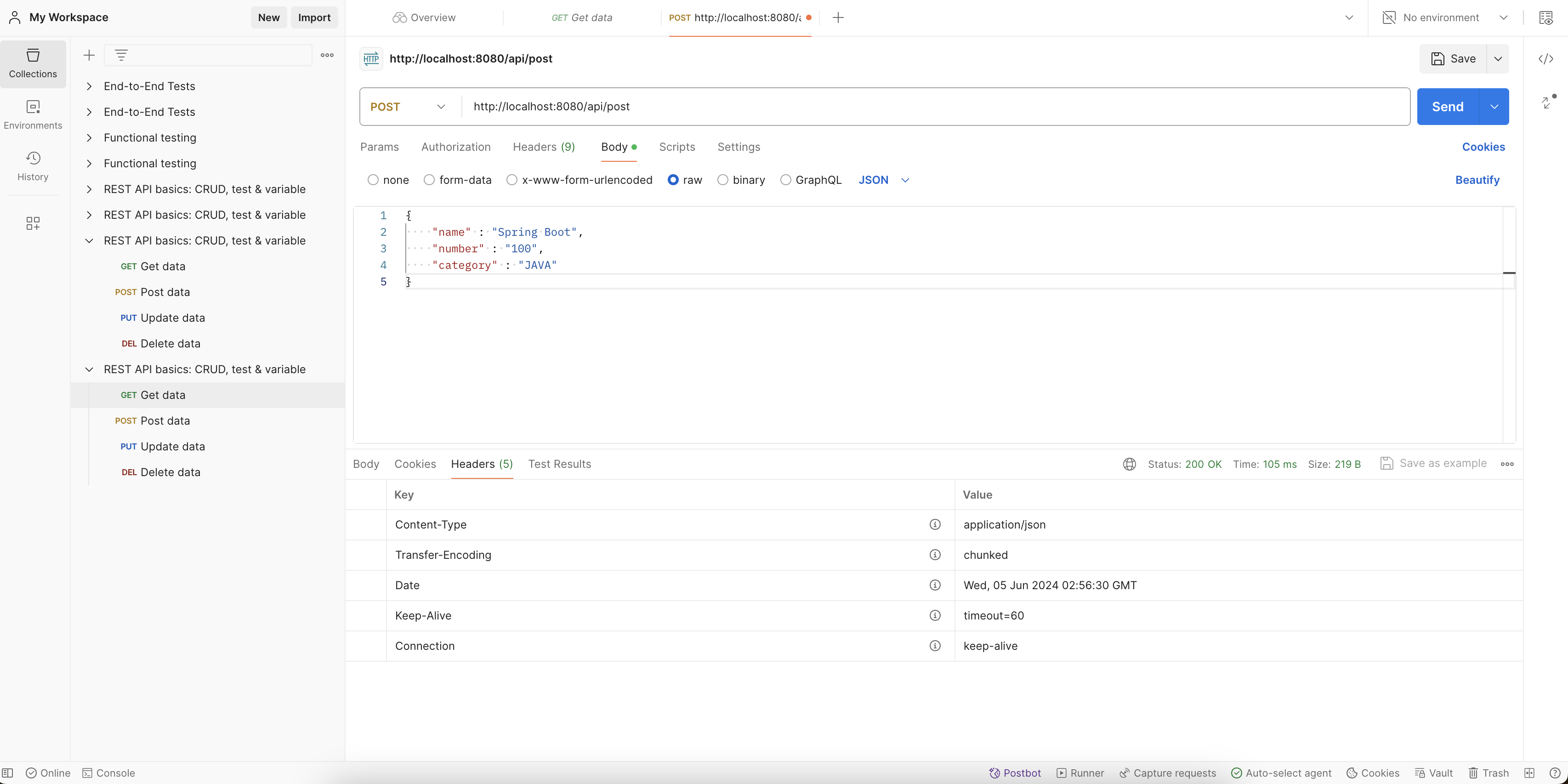 return bookRequest; // postman의 Body에서 서버의 응답을 확인 할 수 있음, return 하는 타입에 따라 content-type이 바뀜