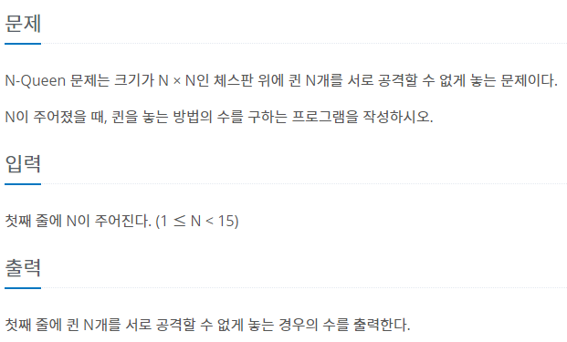 퀸은 같은 행에 존재할 수 없으므로, 각 행에 대해서 퀸이 놓여질 자리를 구분할 필요는 없지만,
