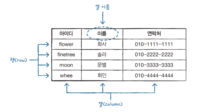 관계 데이터 베이스에 데이터를 저장할 수 있는 형식 테이블 (Table = Relation)