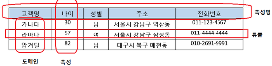 행과 열의 교차점은 원자 값이라는 오직 하나의 값으로 구성
