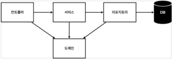 서비스는 리포지토리의 기능을 사용하며, 리포지토리에 의존