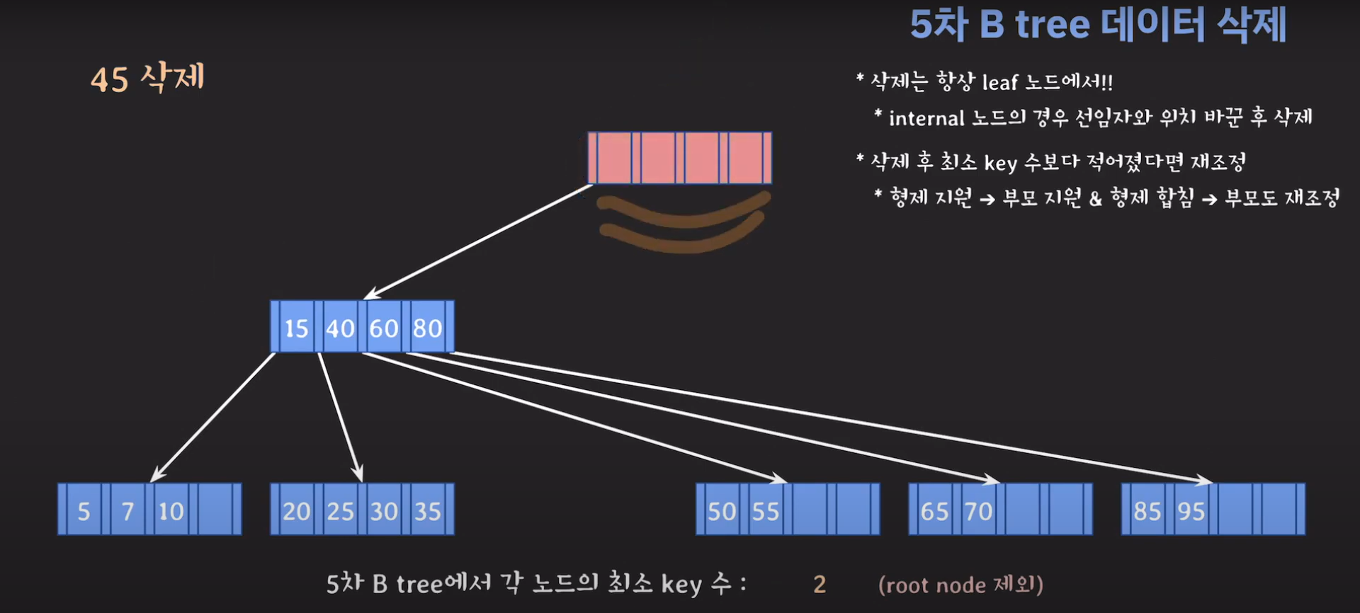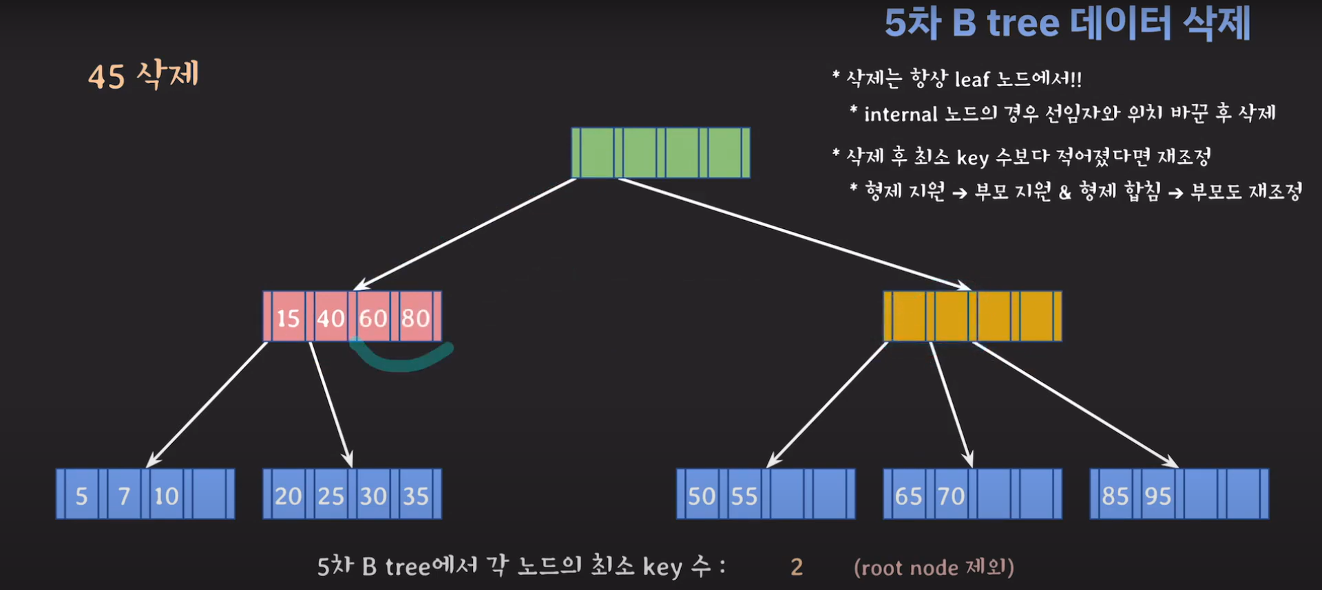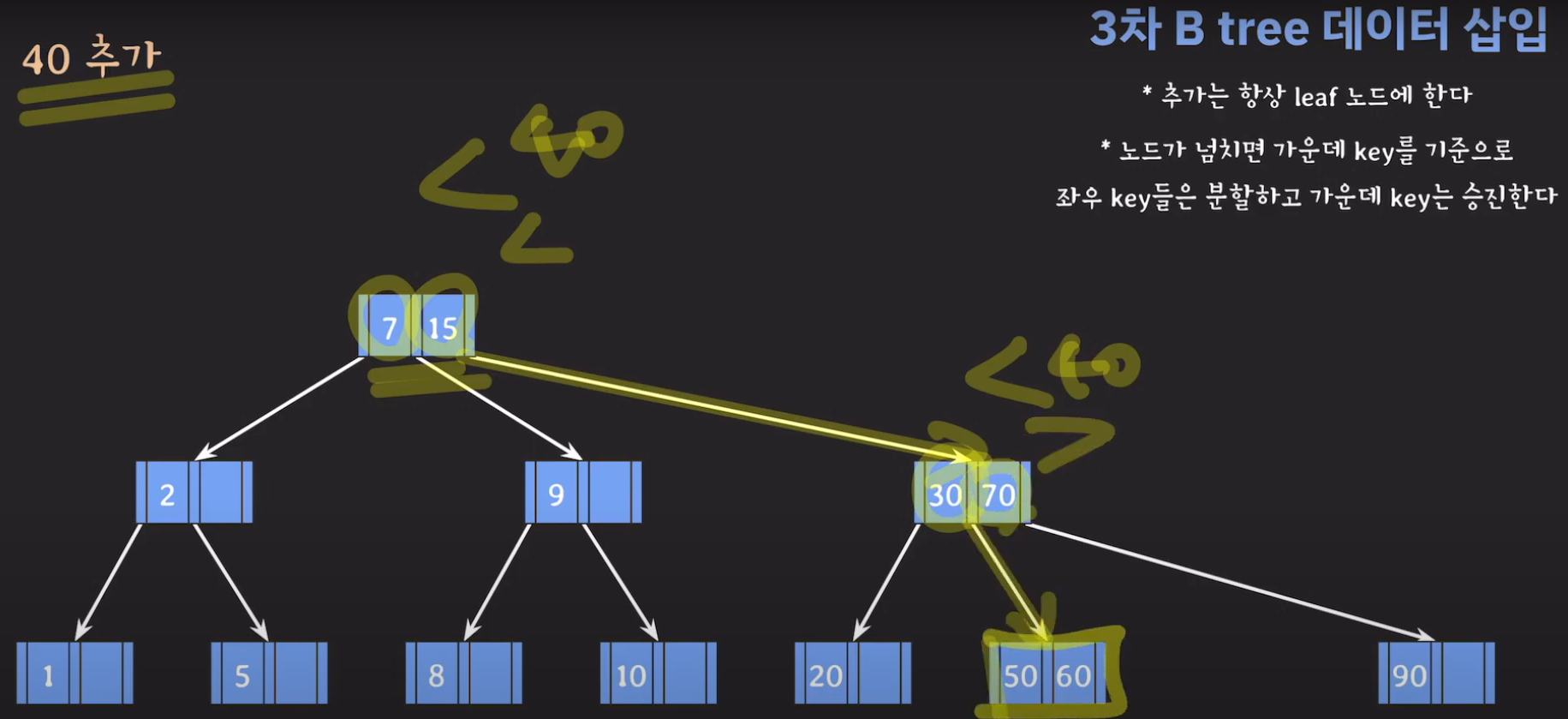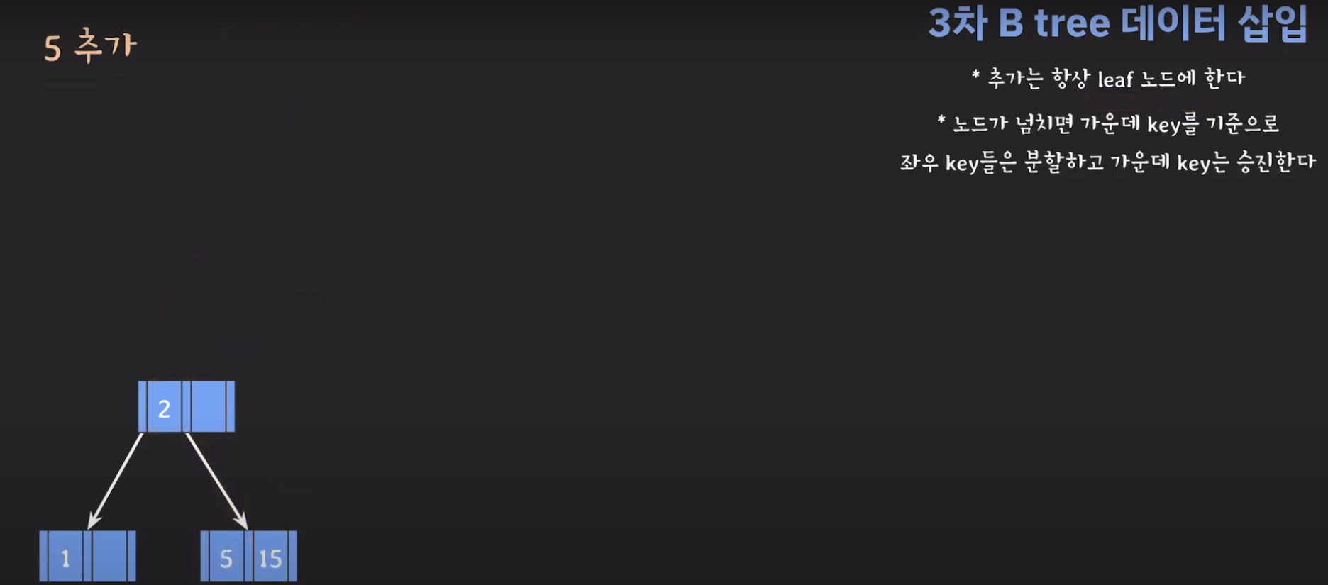 5차 B Tree를 예시로 마무리해봅시다.