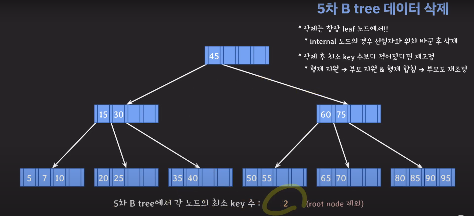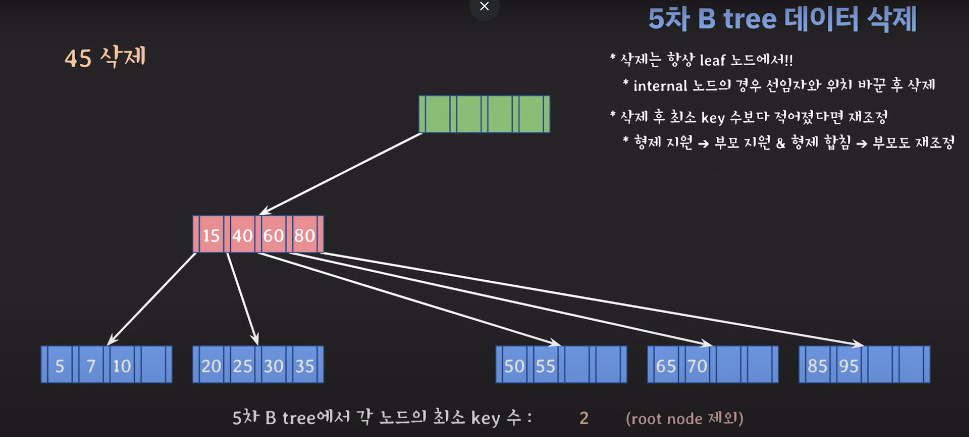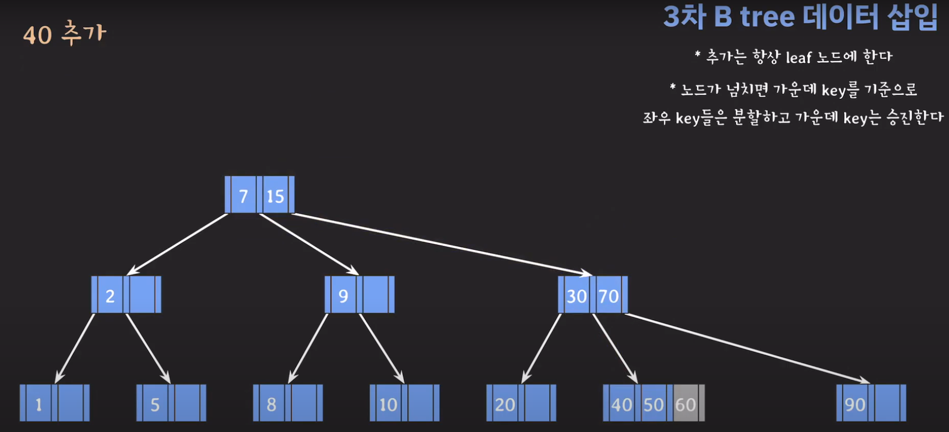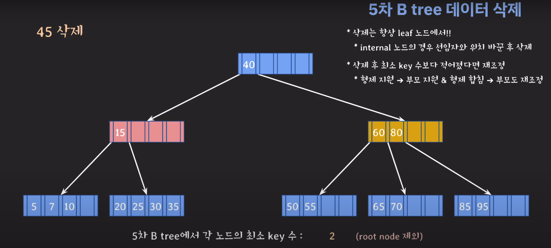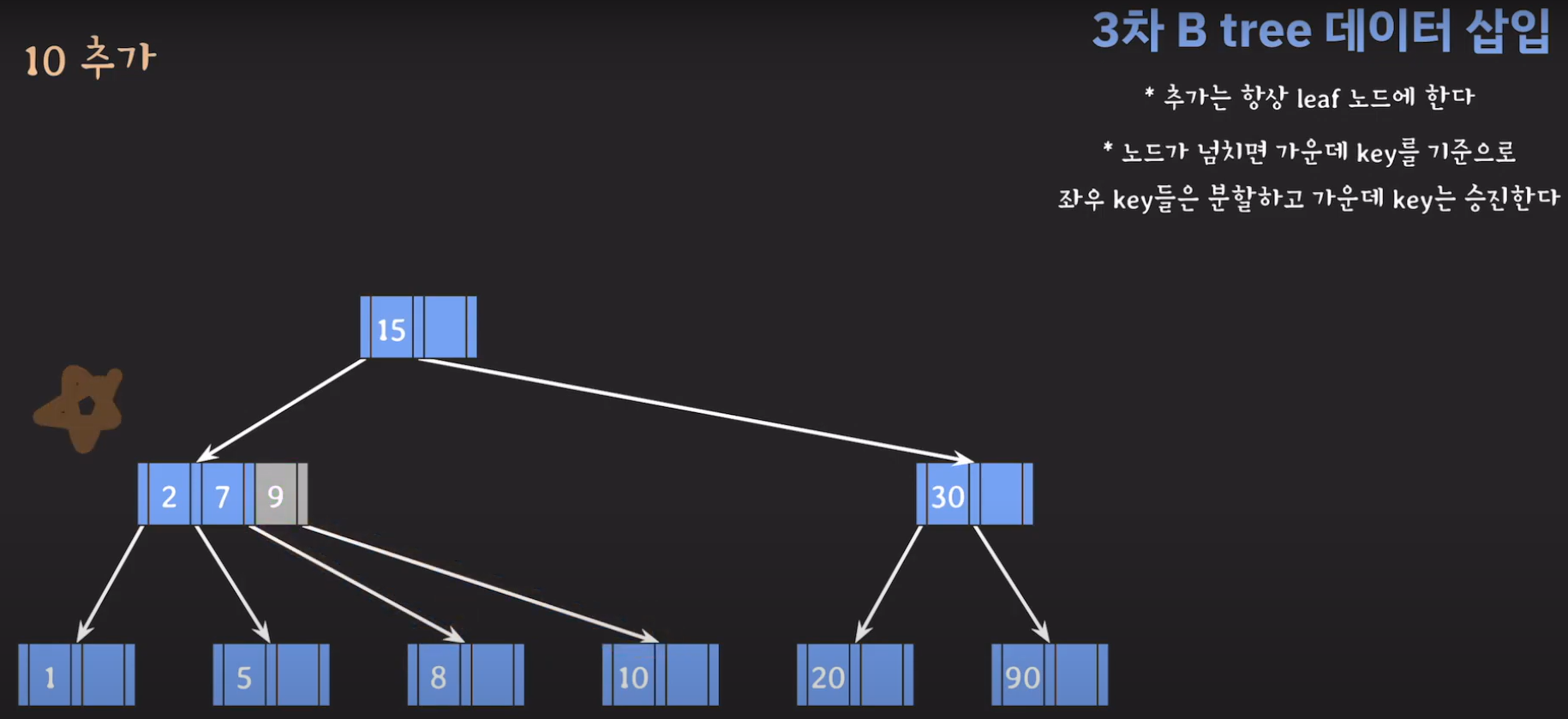 5차 B Tree를 예시로 마무리해봅시다.