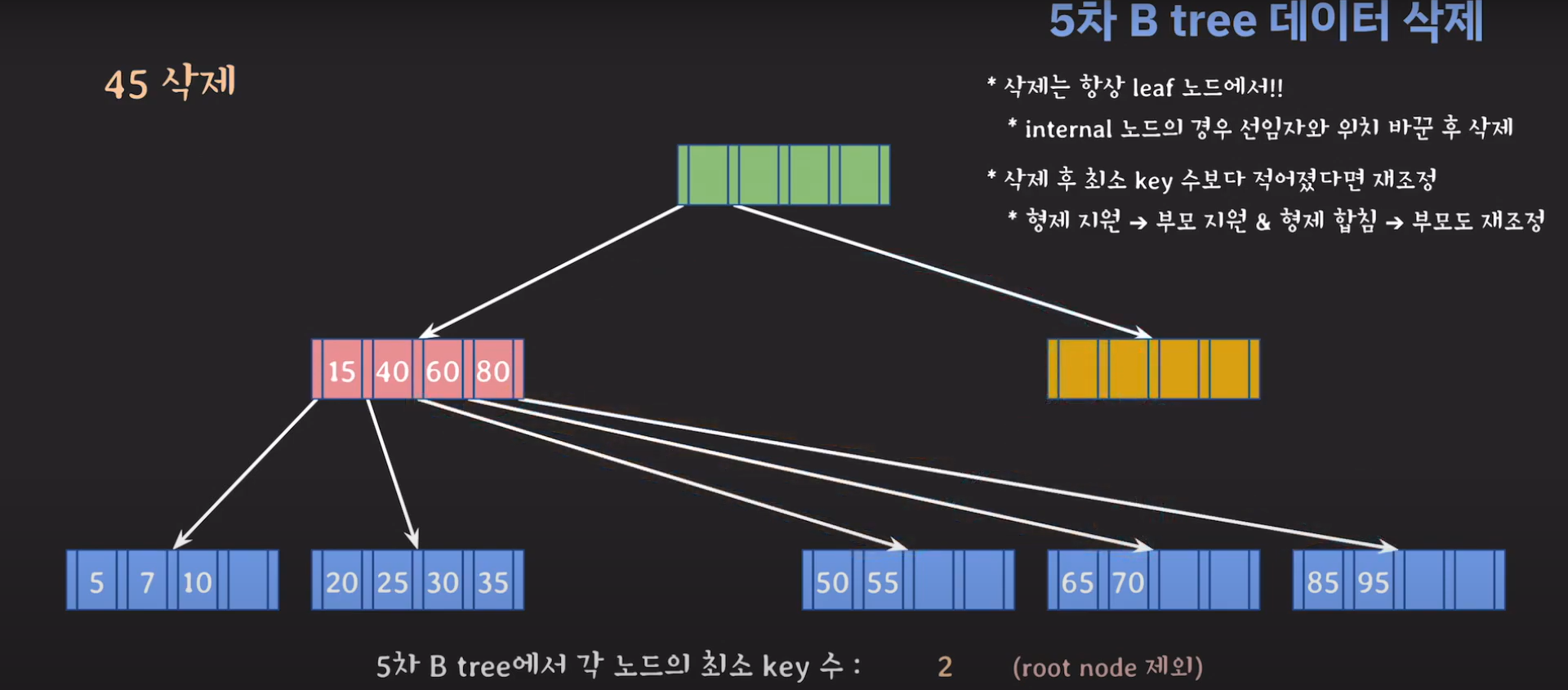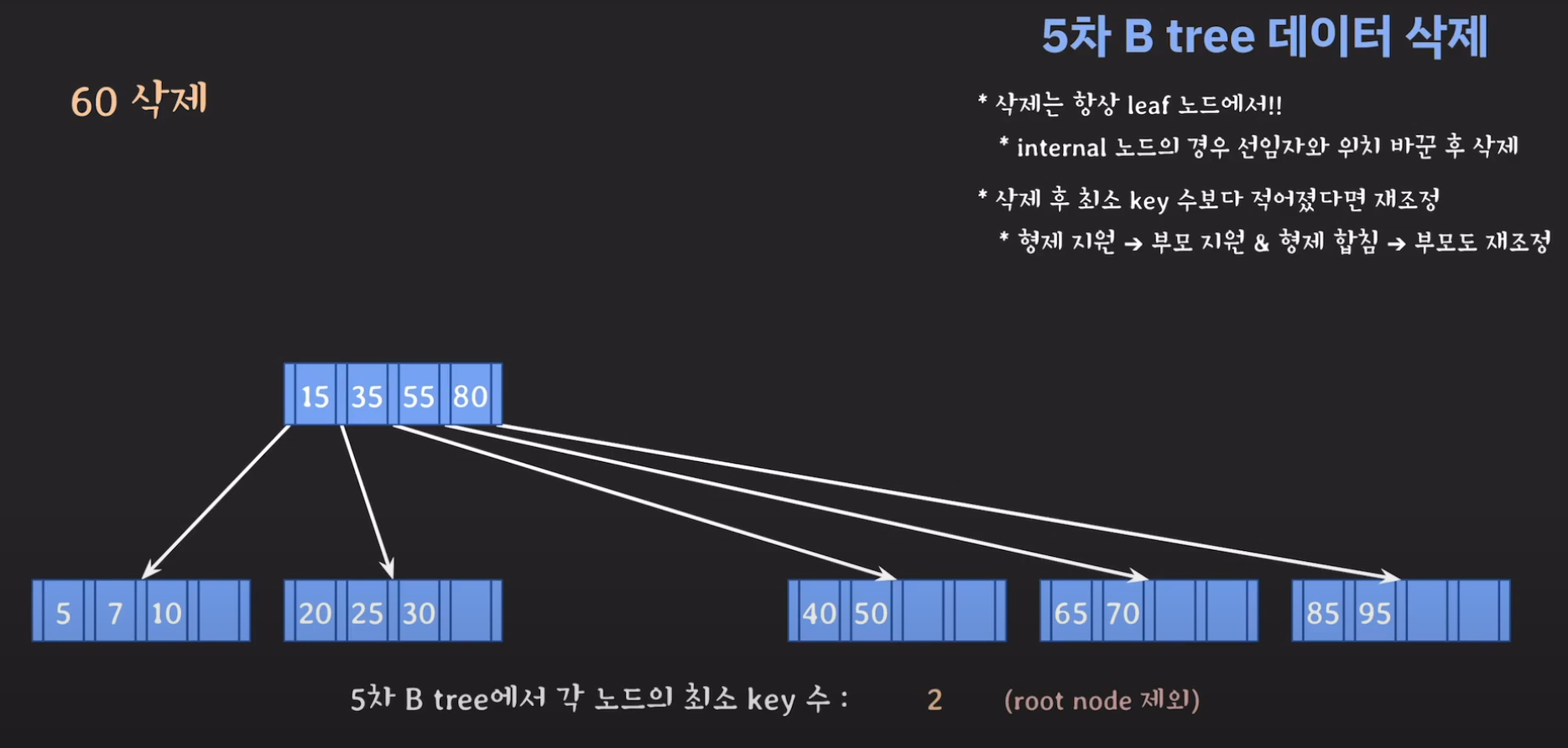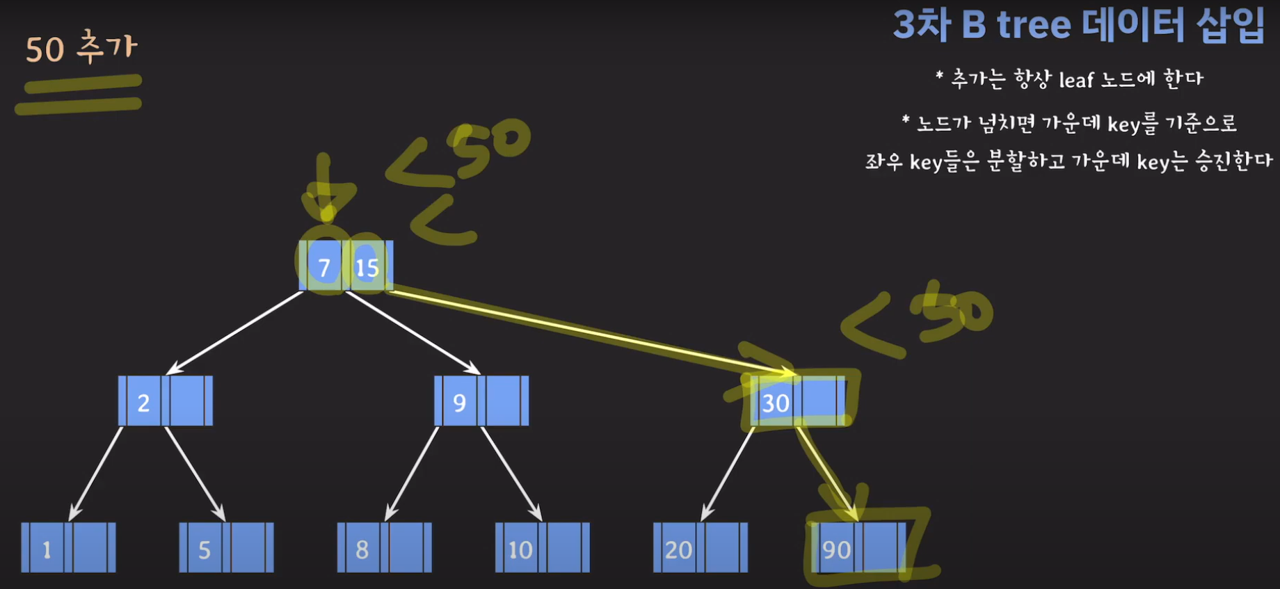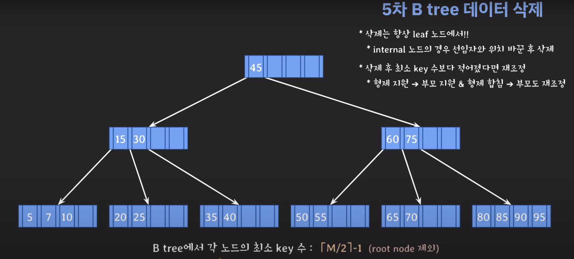 5차 B Tree를 예시로 마무리해봅시다.