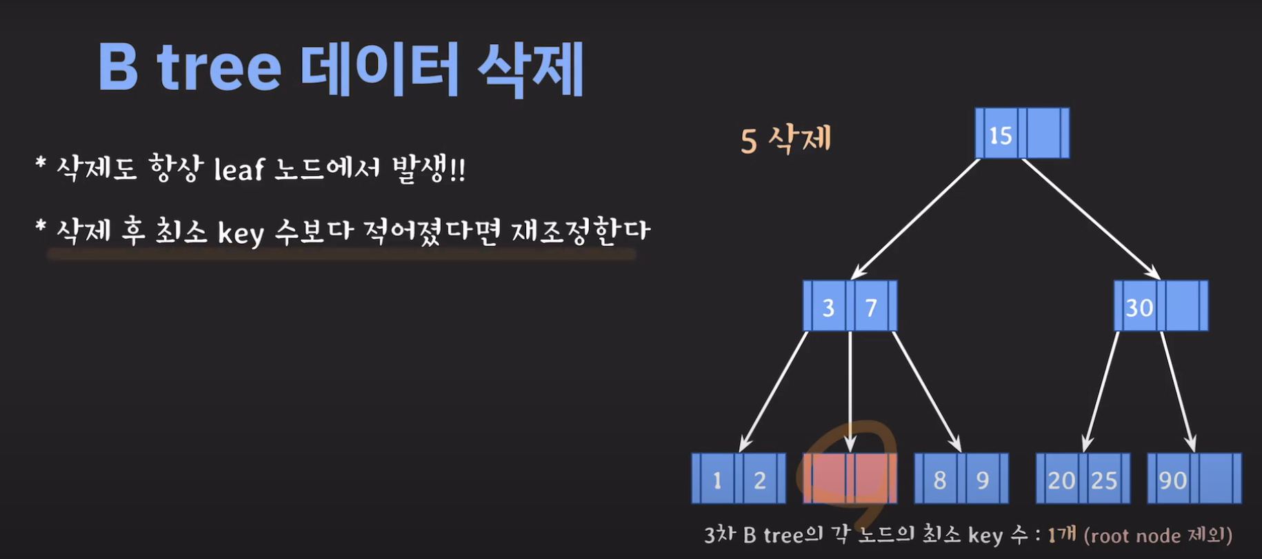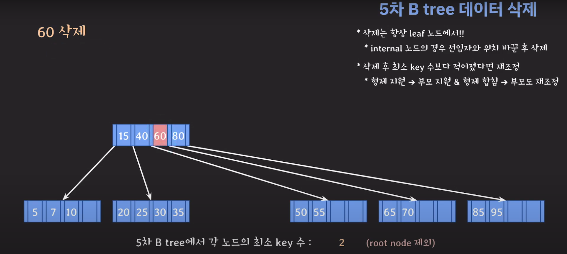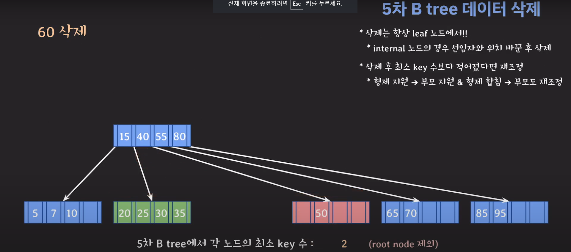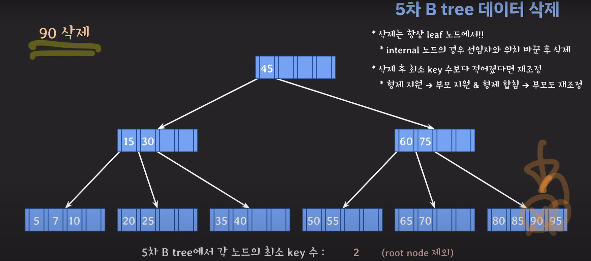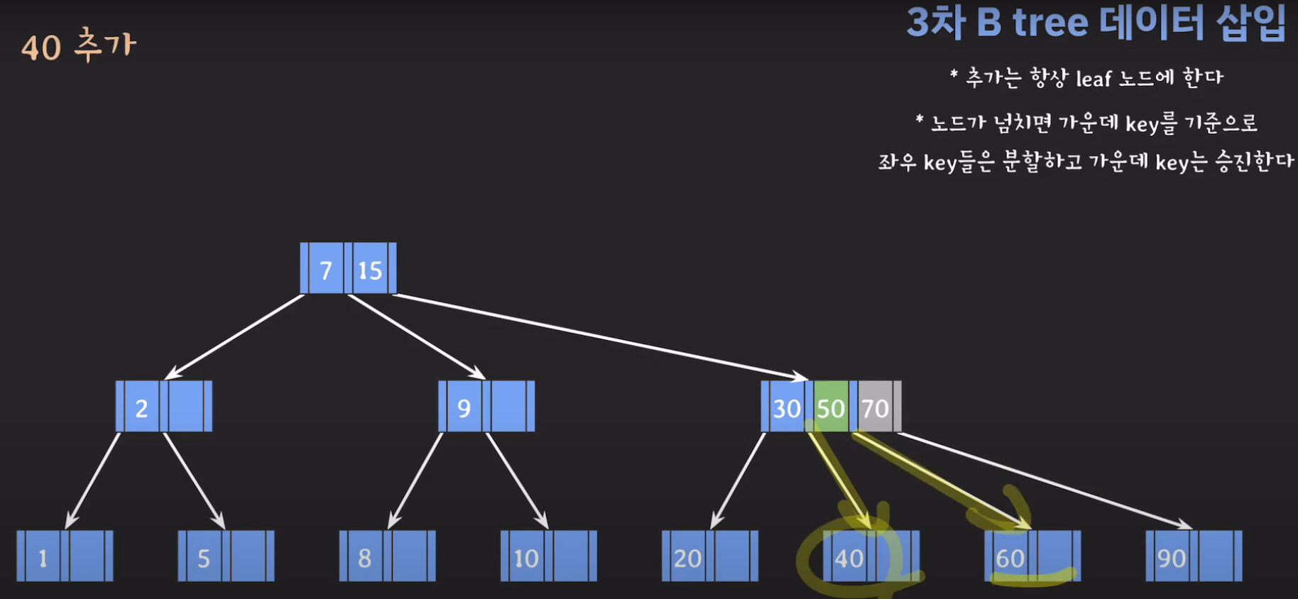 5차 B Tree를 예시로 마무리해봅시다.