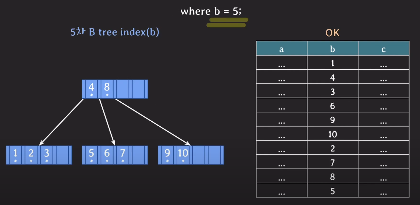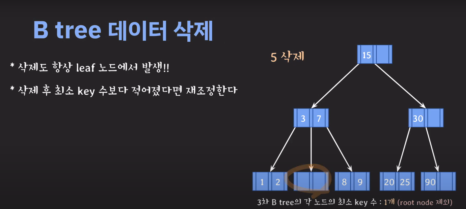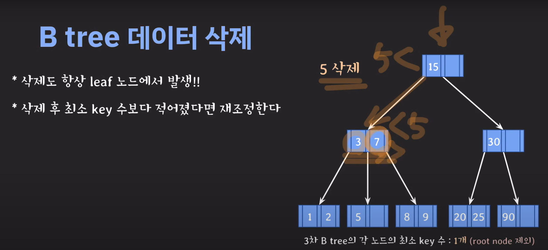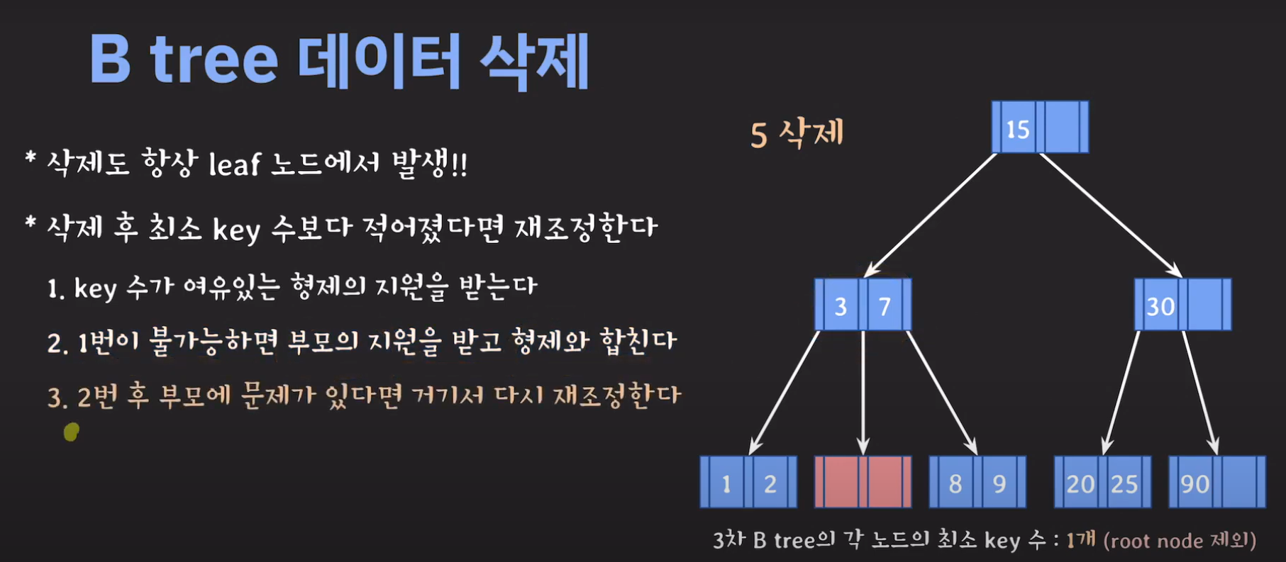 5차 B Tree를 예시로 마무리해봅시다.