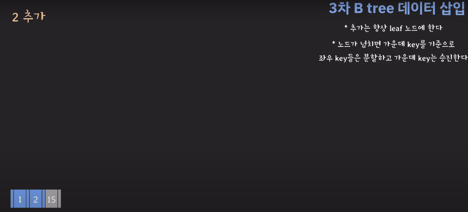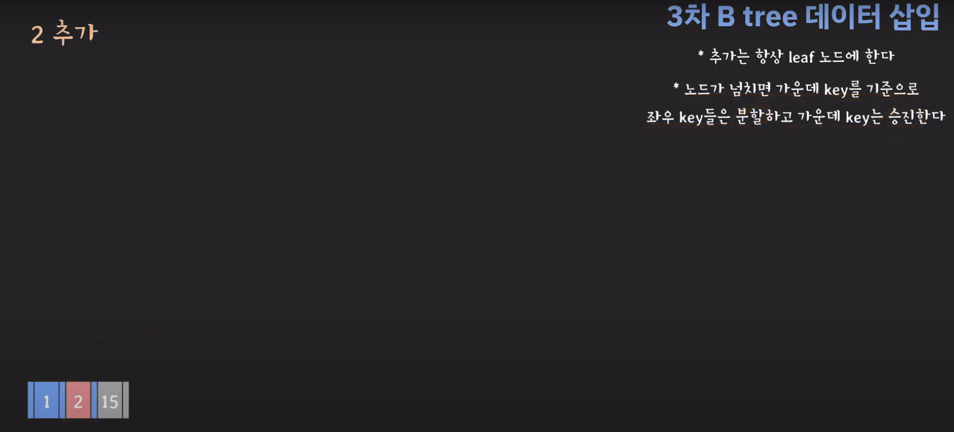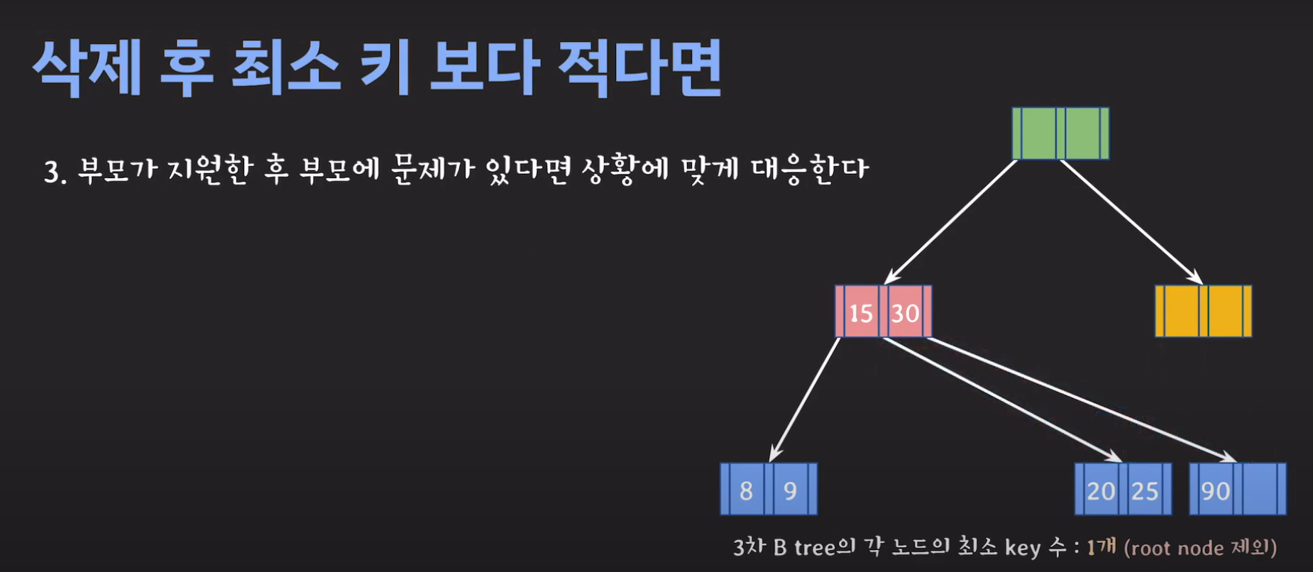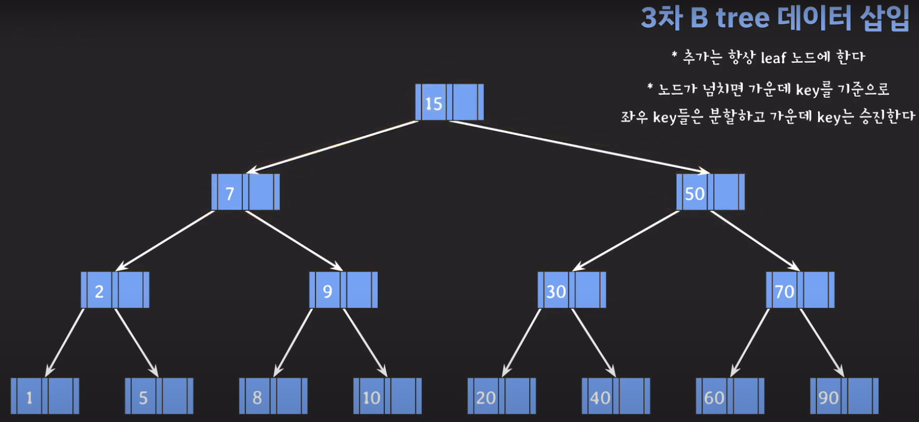 위와 같은 경우는 3차 B Tree라고 부릅니다.