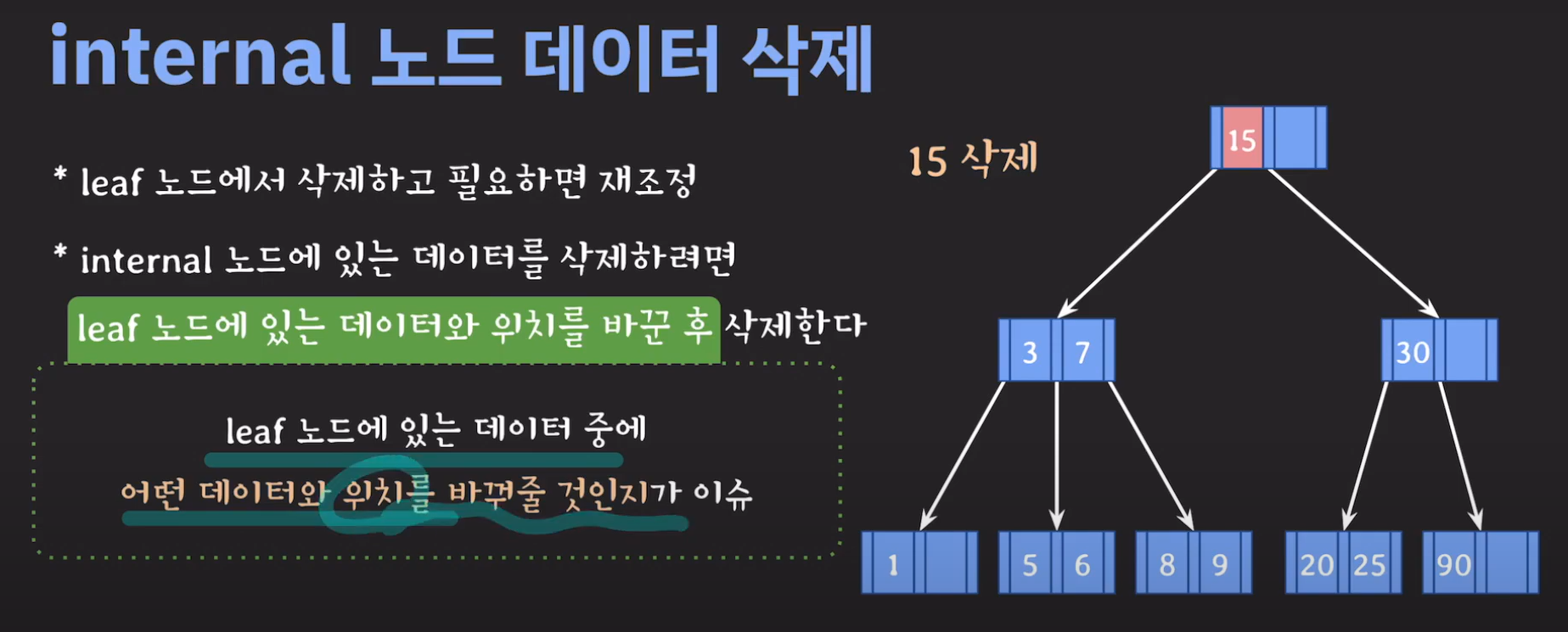 75는 internal 노드이므로 선임자과 바꿔줍시다.