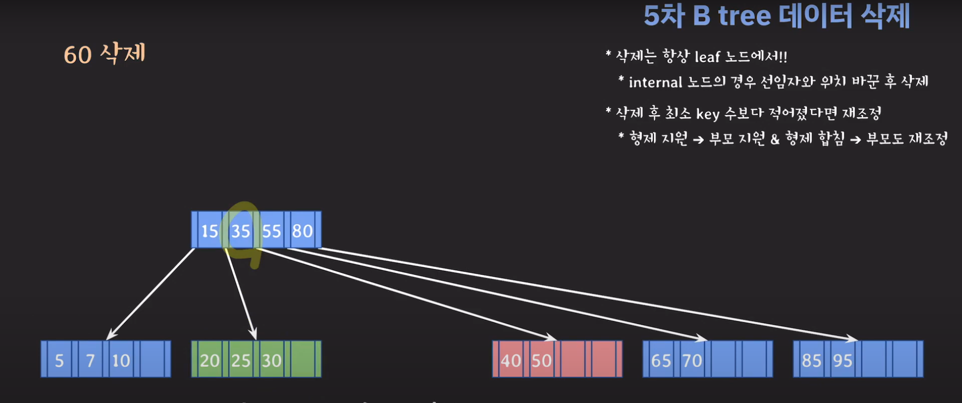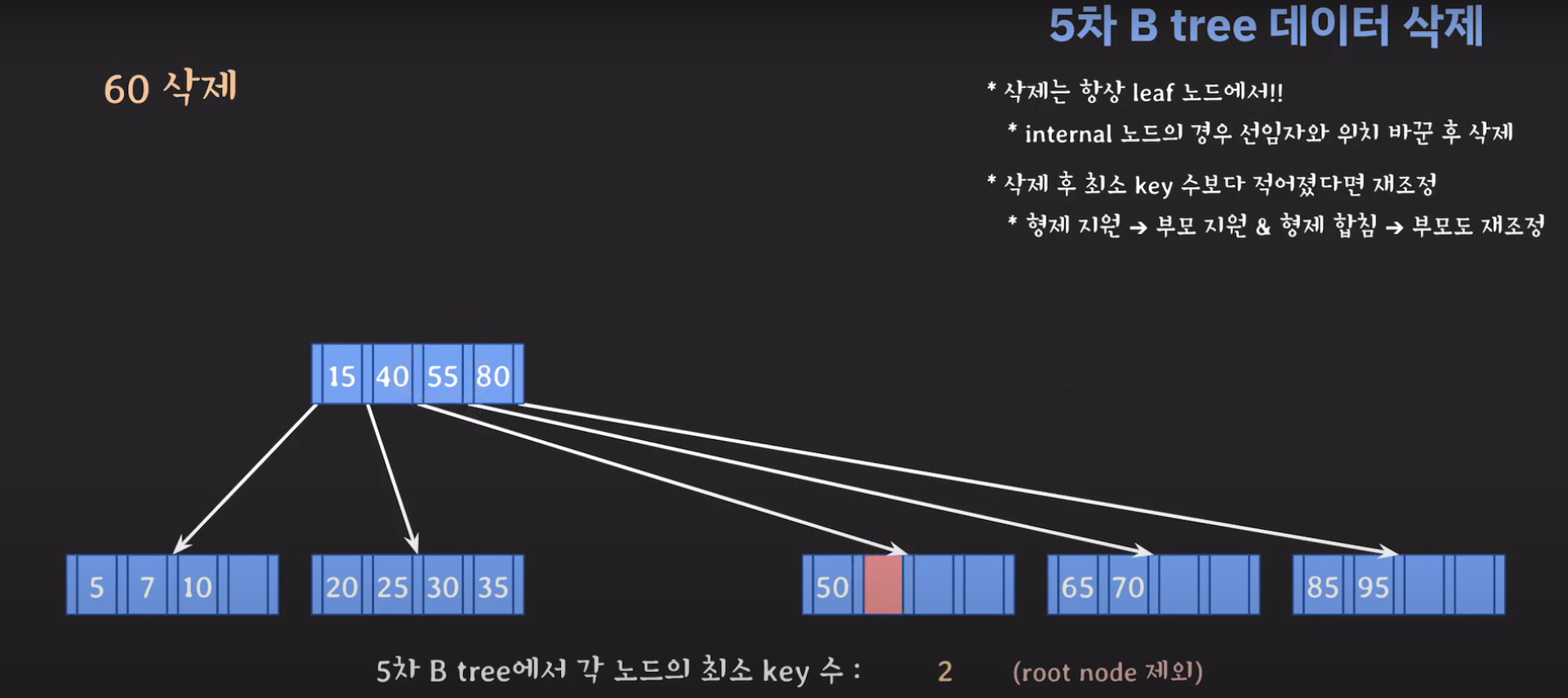 60은 internal 노드이므로 선임자와 바꿔줍시다.