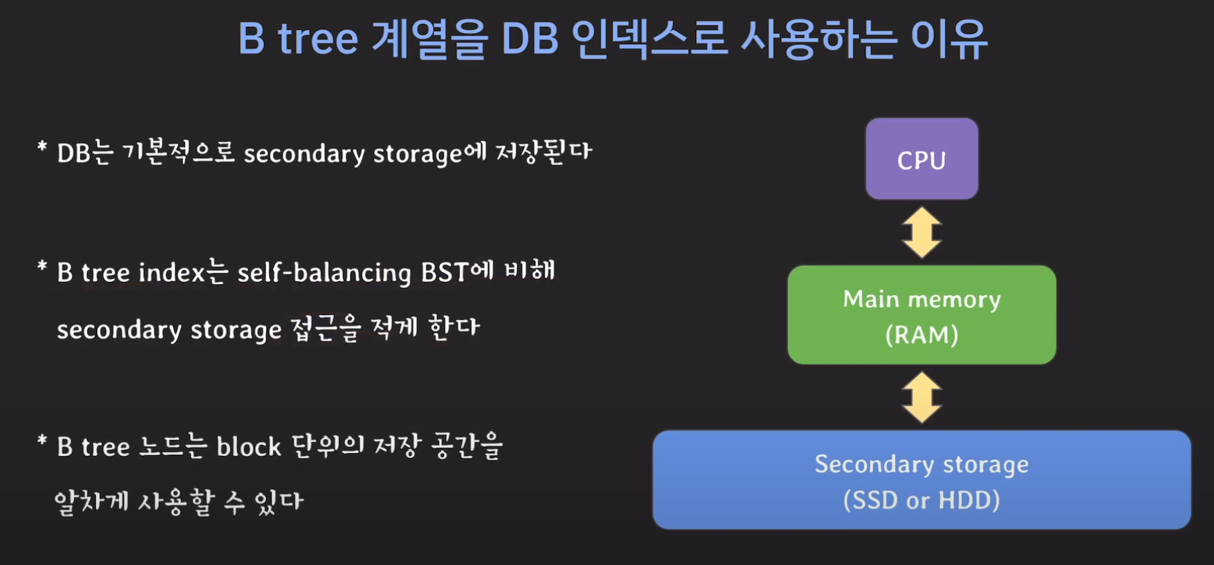 그러나 일반적으로 이런 일은 거의 없으므로 B tree를 사용한다고 생각하면 됩니다.