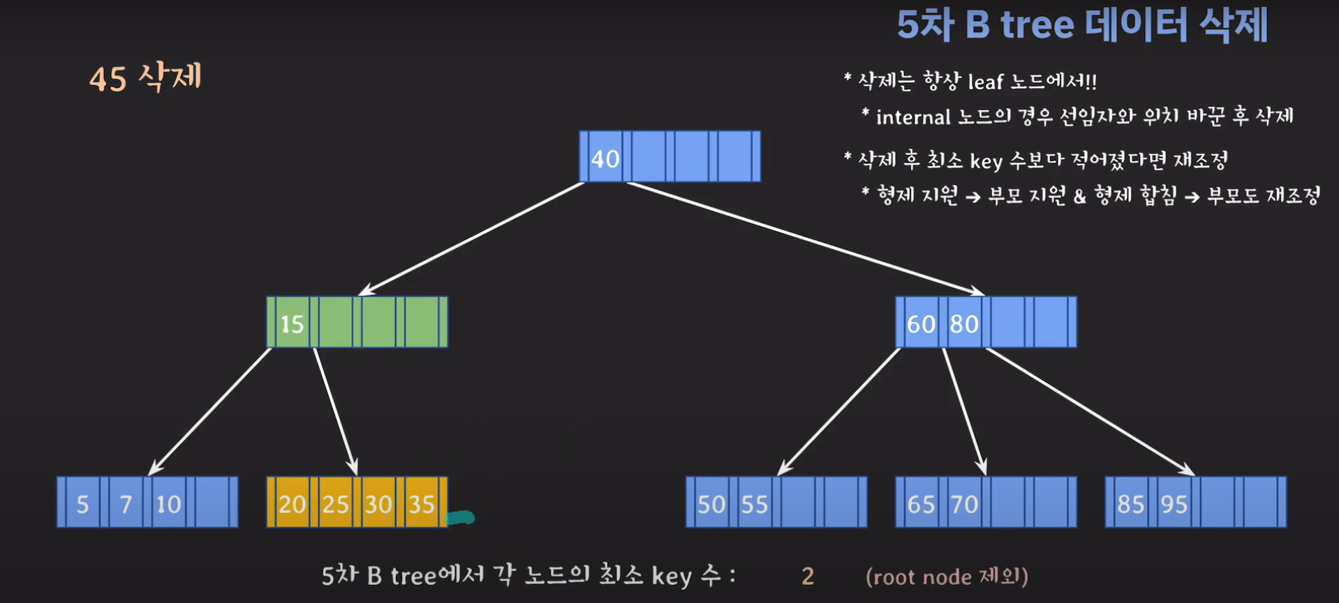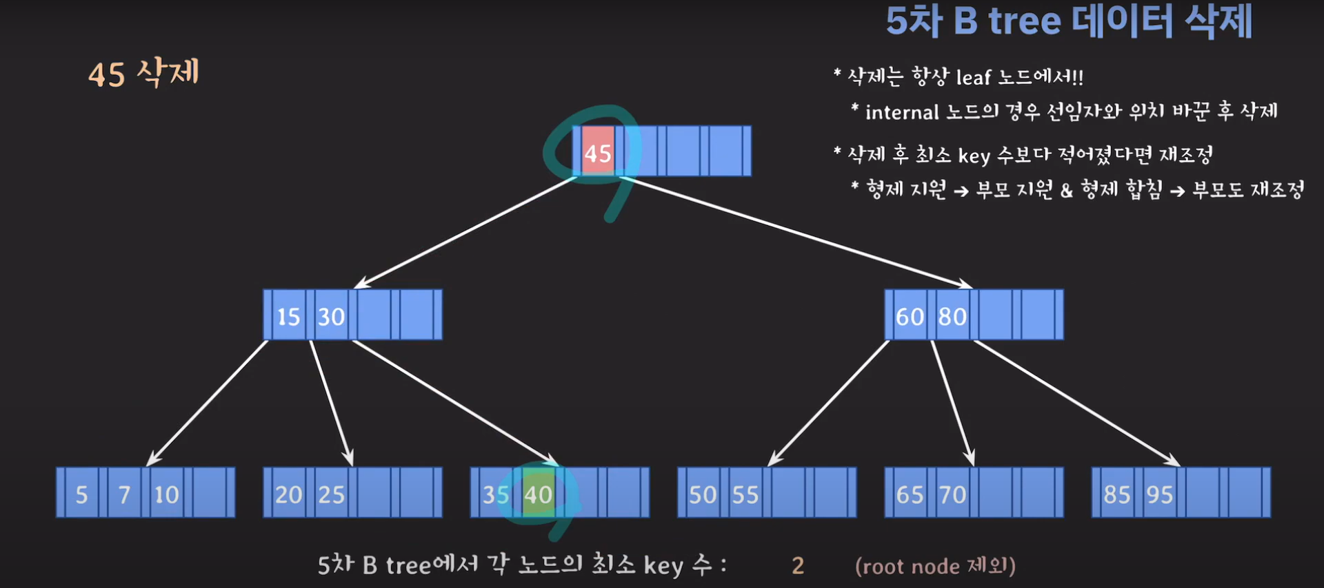 45는 internal 노드이므로 선임자와 바꿔줍시다.