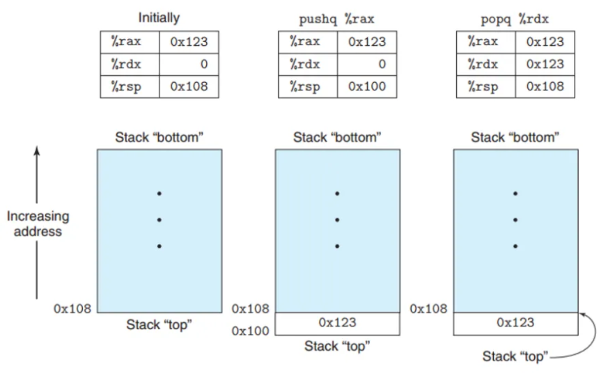 %rsp가 가리키는 주소)에서 데이터를 읽습니다.%rsp)를 8만큼 증가시켜 공간을 제거합니다.따라서 popq %rax 명령어는 아래 두 명령어와 동일하게 동작합니다.