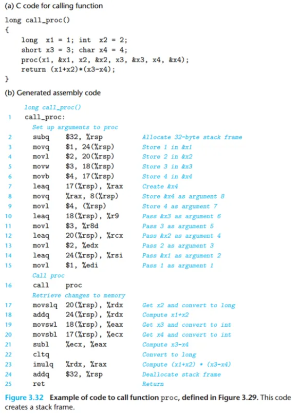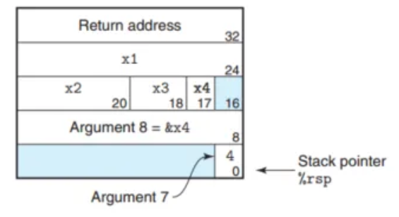 &가 사용되어, 해당 변수의 메모리 주소를 생성해야 할 때.일반적으로 함수는 스택 포인터(%rsp)를 감소시켜 자신의 스택 프레임 내에 지역 변수를 위한 공간을 할당합니다.