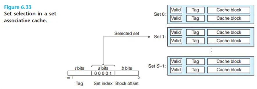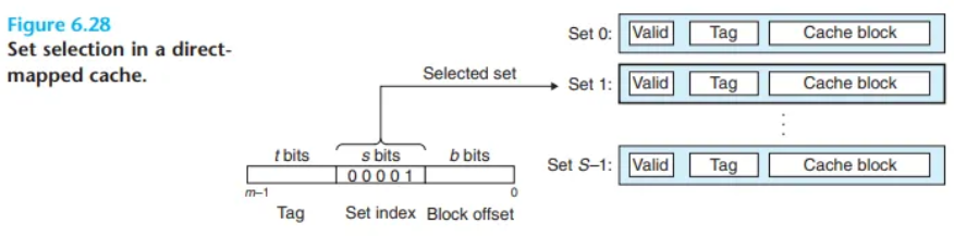 | t bits (Tag) | s bits (Set Index) | b bits (Block Offset) | | m-1 (s+b) | (s+b)-1 b | b-1 0 |