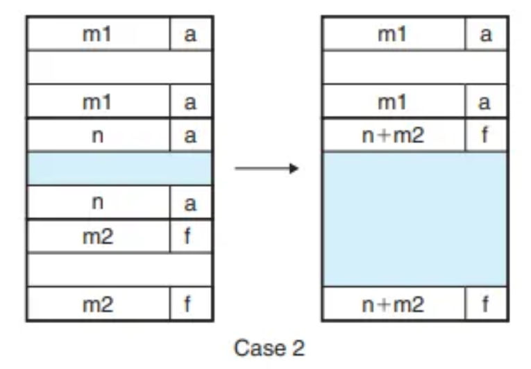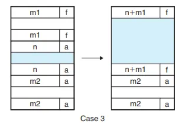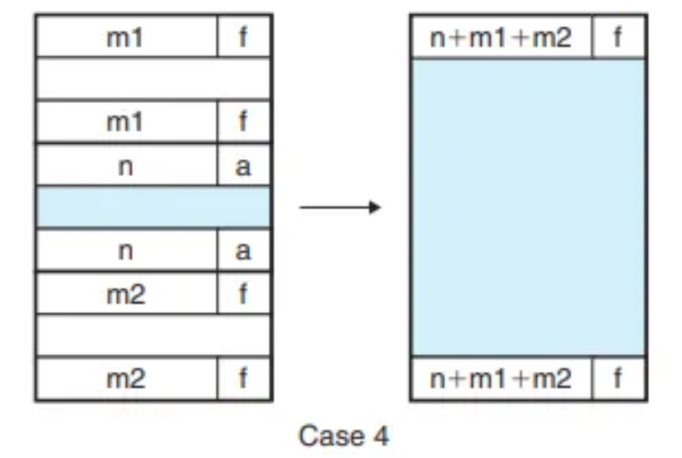 이전 블록이 "할당됨(A=1)" 상태이므로, 왼쪽 병합은 일어나지 않습니다.