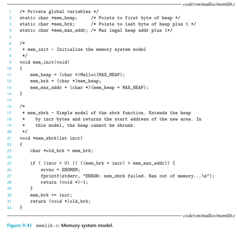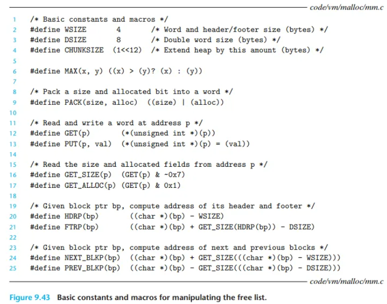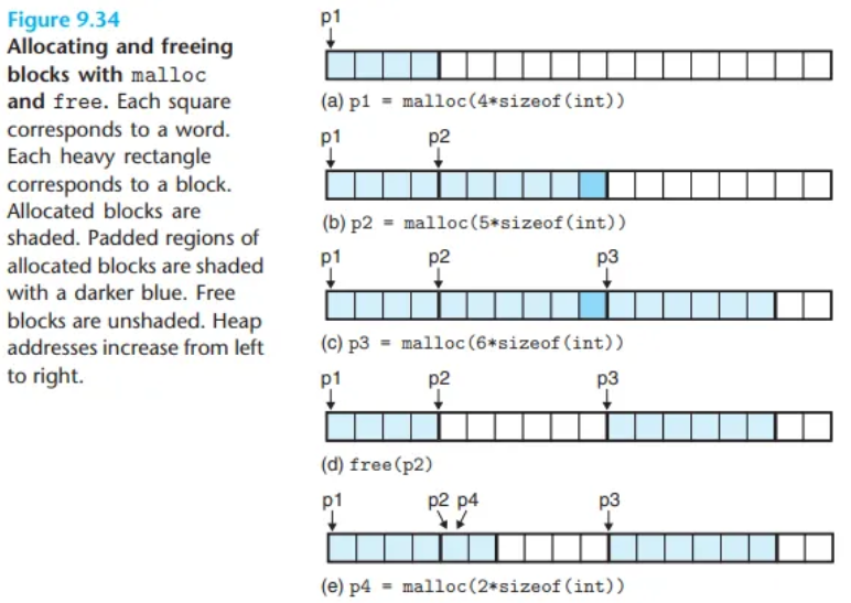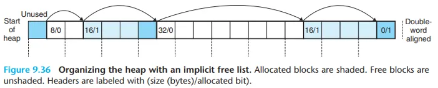 malloc 패키지 ( malloc()으로 할당, free()로 해제), C++의 new / delete 연산자.이 섹션의 나머지 부분은 명시적 할당기의 설계와 구현에 대해 초점을 맞춥니다.