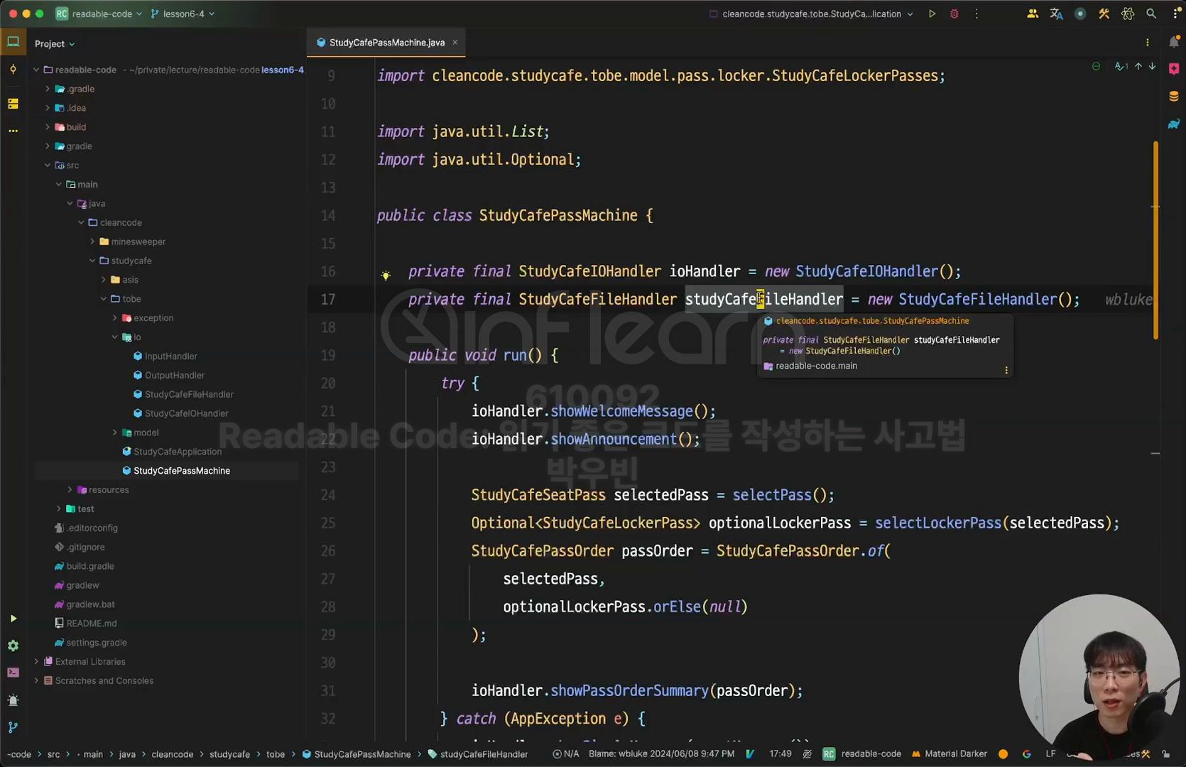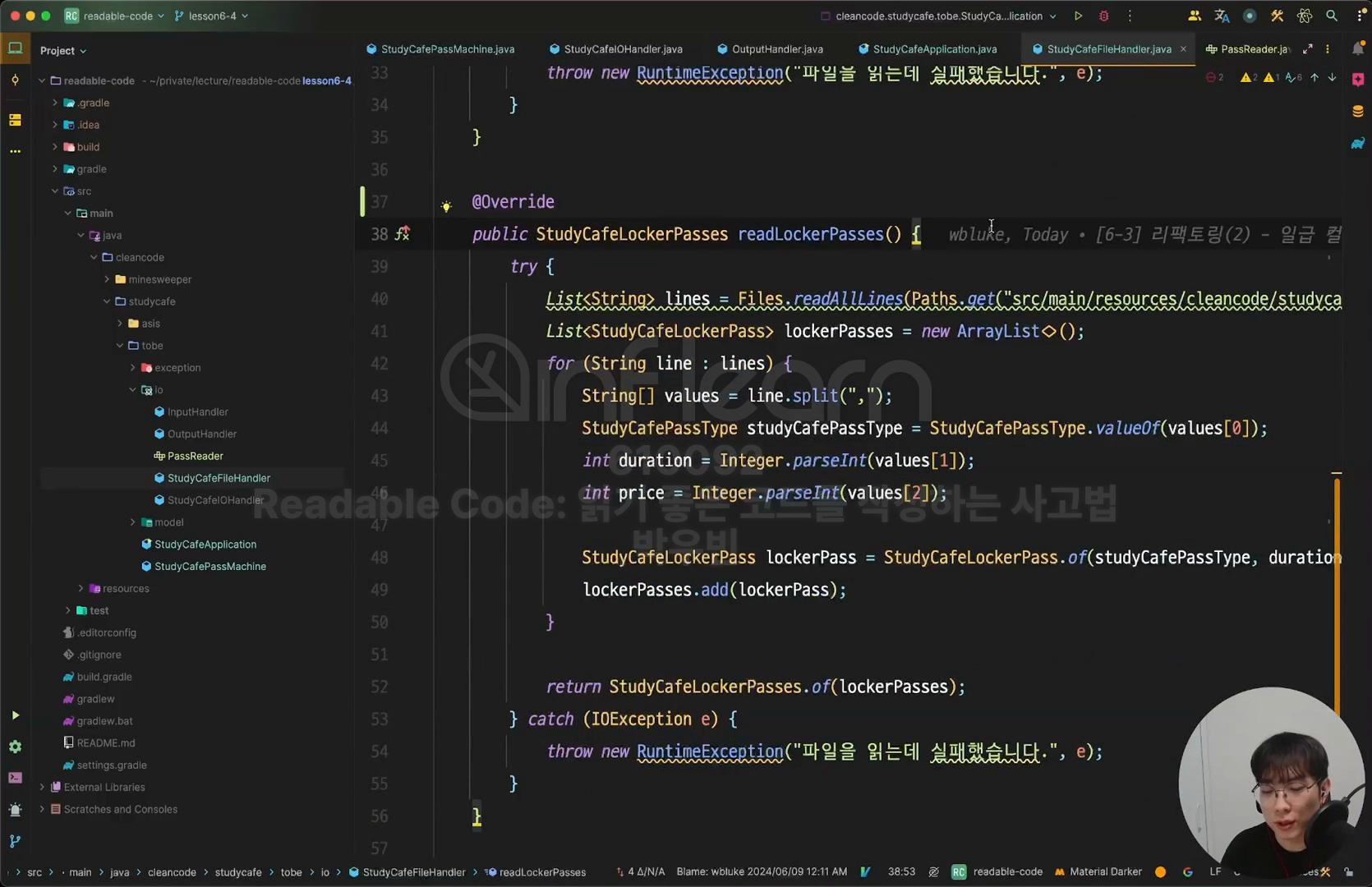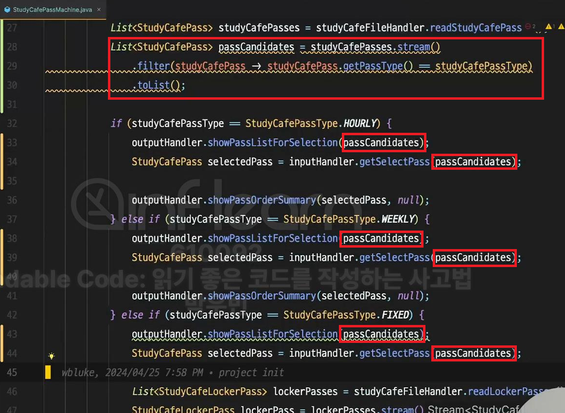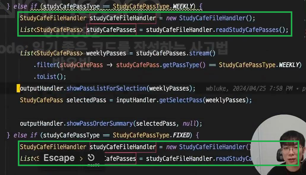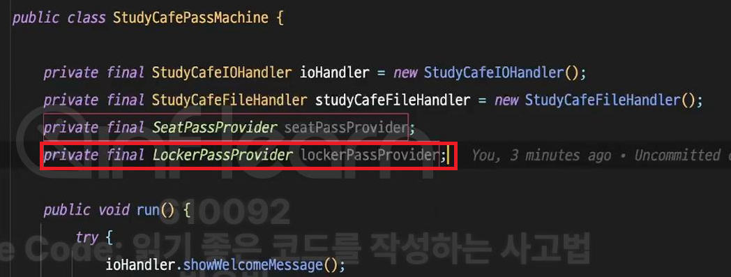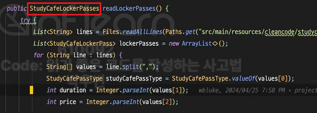 - FileHandler라는 구현체는 passReader로 숨겼는데 기존에 사용하고 있던 readStudyCafePasses()가 애매해졌다.