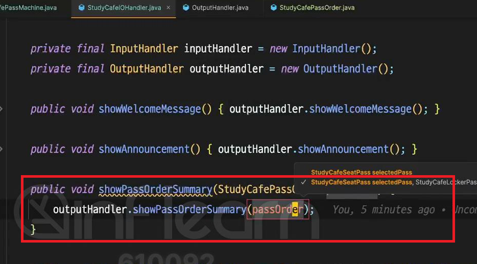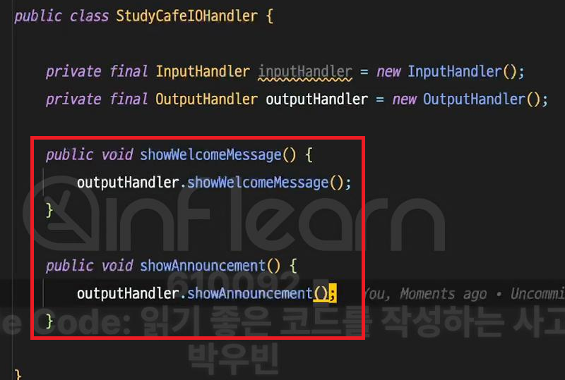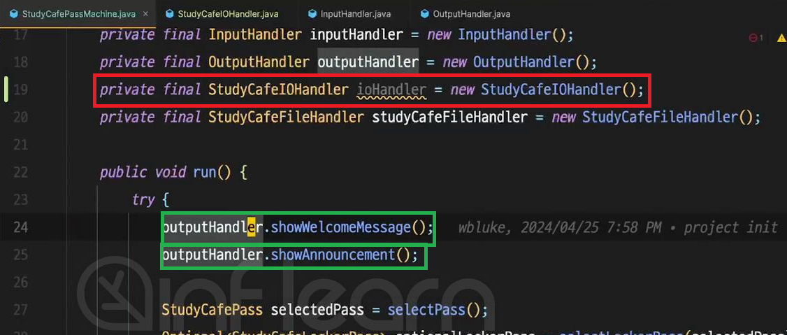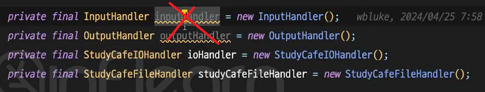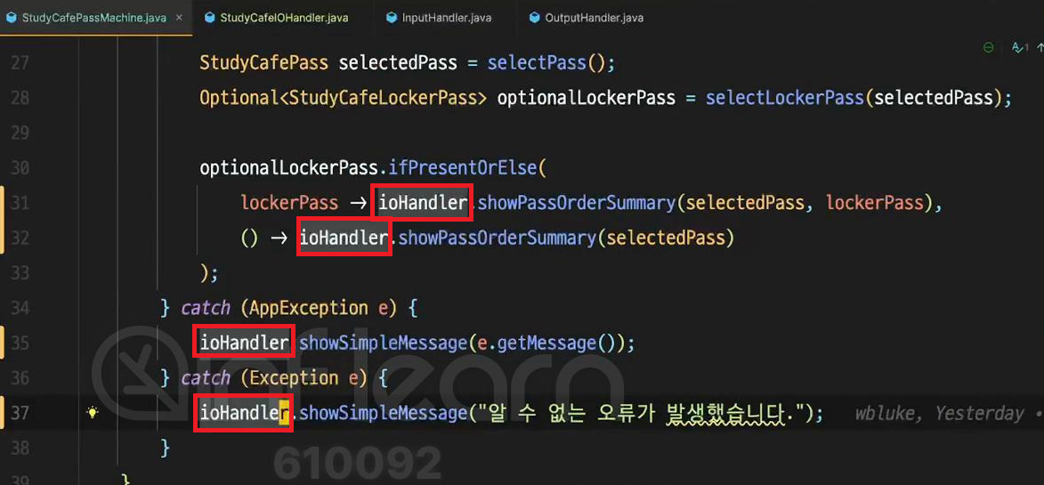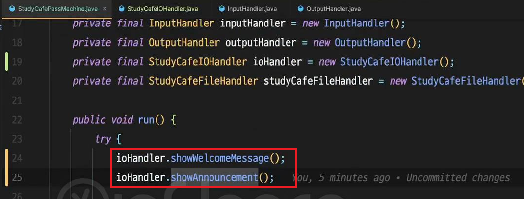 - StudyCafeIOHandler에서 인풋, 아웃풋 핸들러를 가지고 있게 하자.