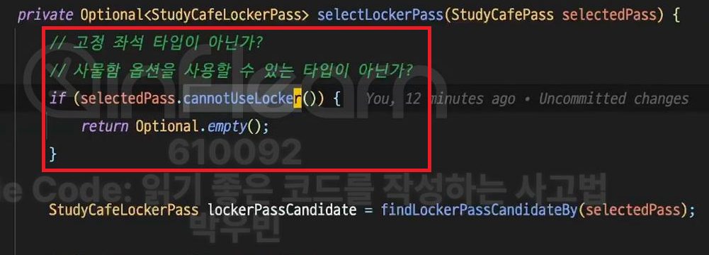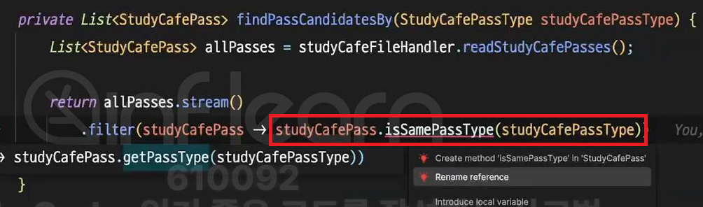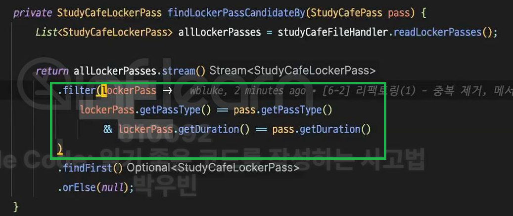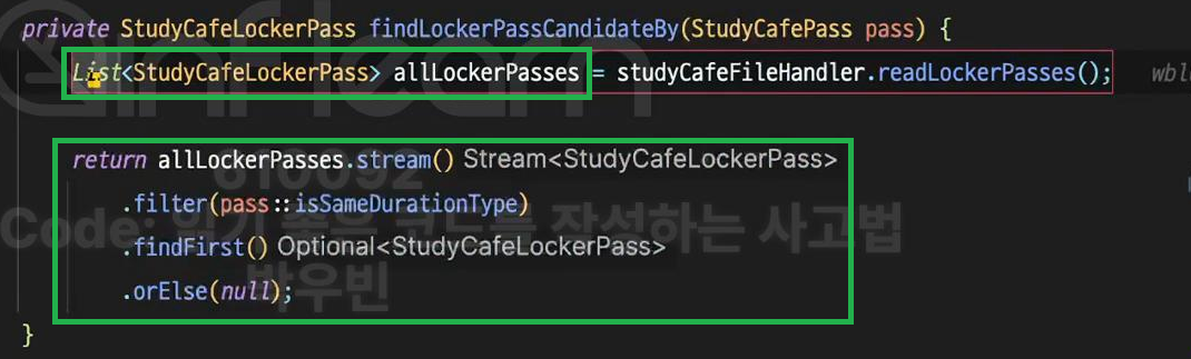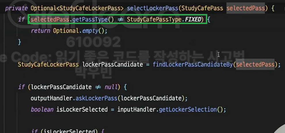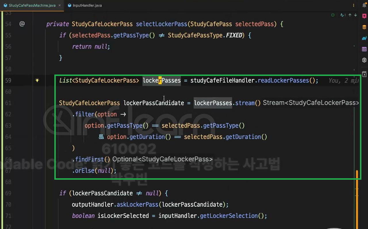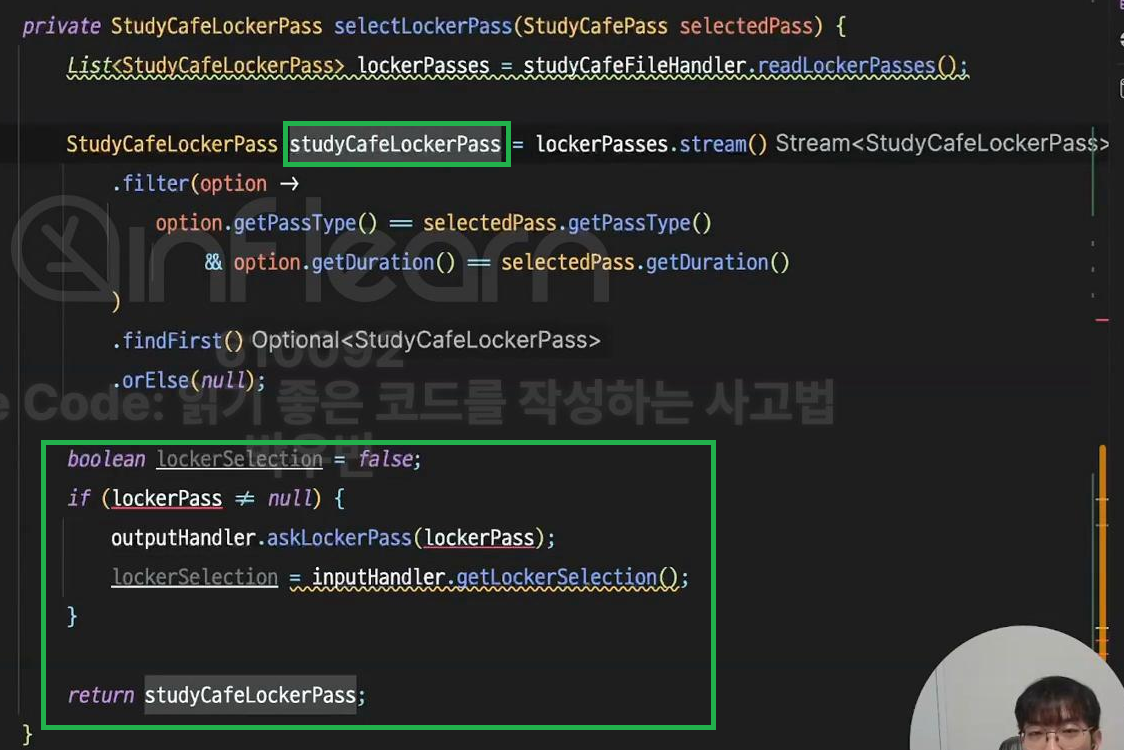 - 사물함 이용권을 고르는 로직을 메서드로 추출해보자.