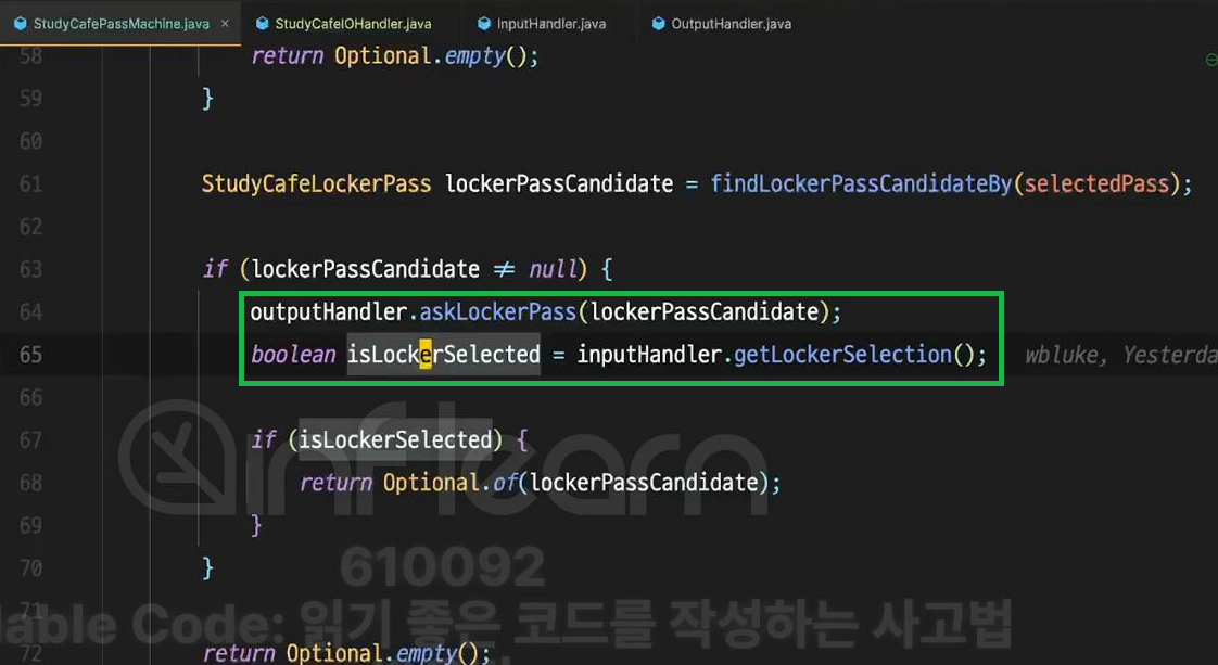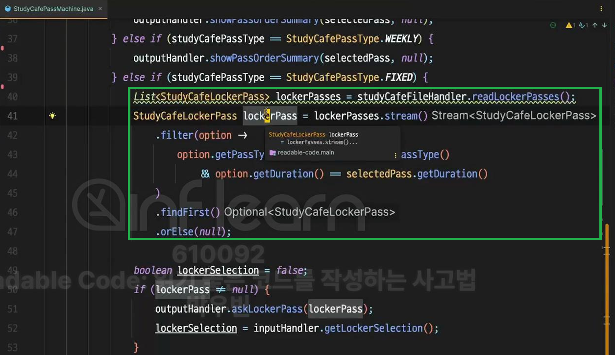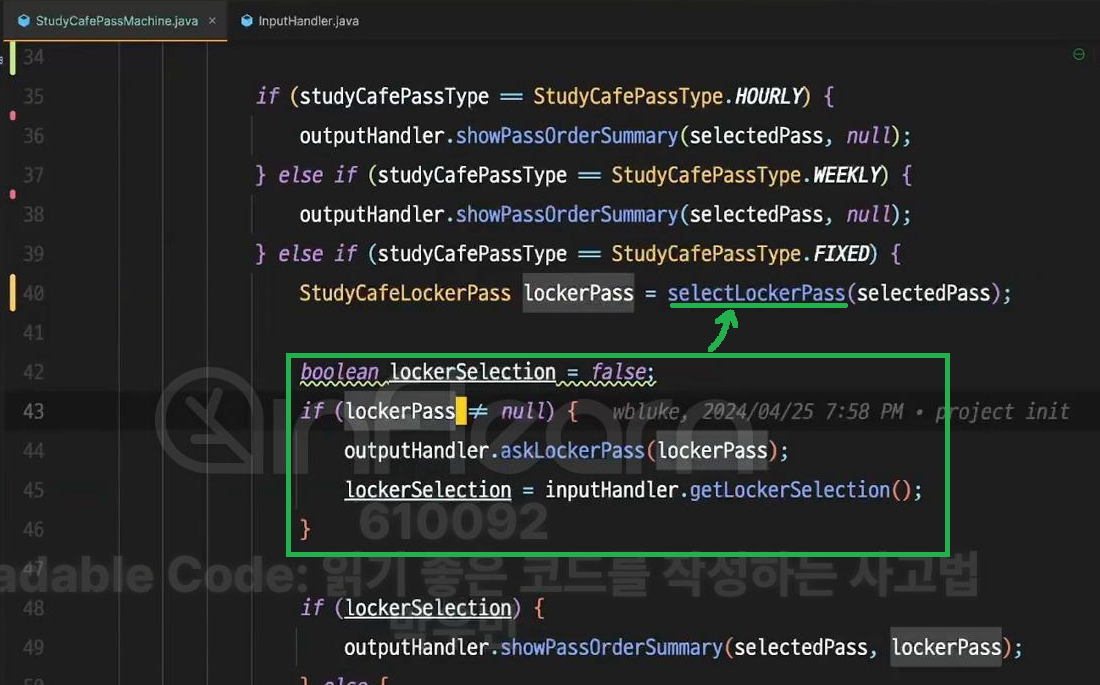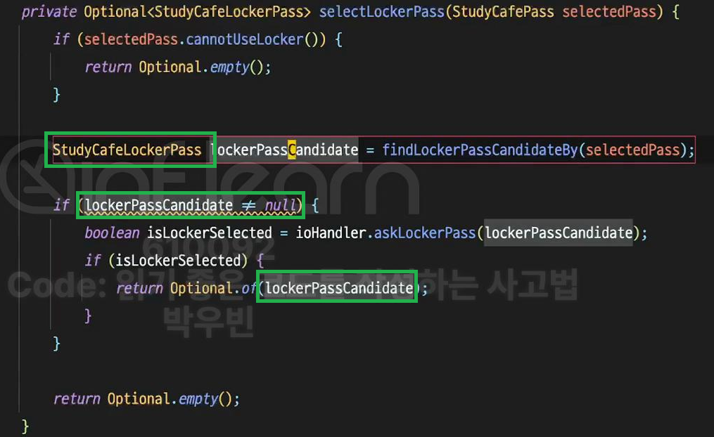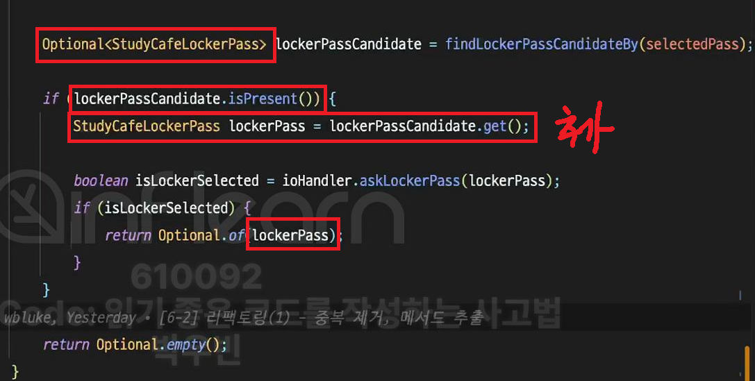 - 사물함 이용권을 고르는 로직을 메서드로 추출해보자.