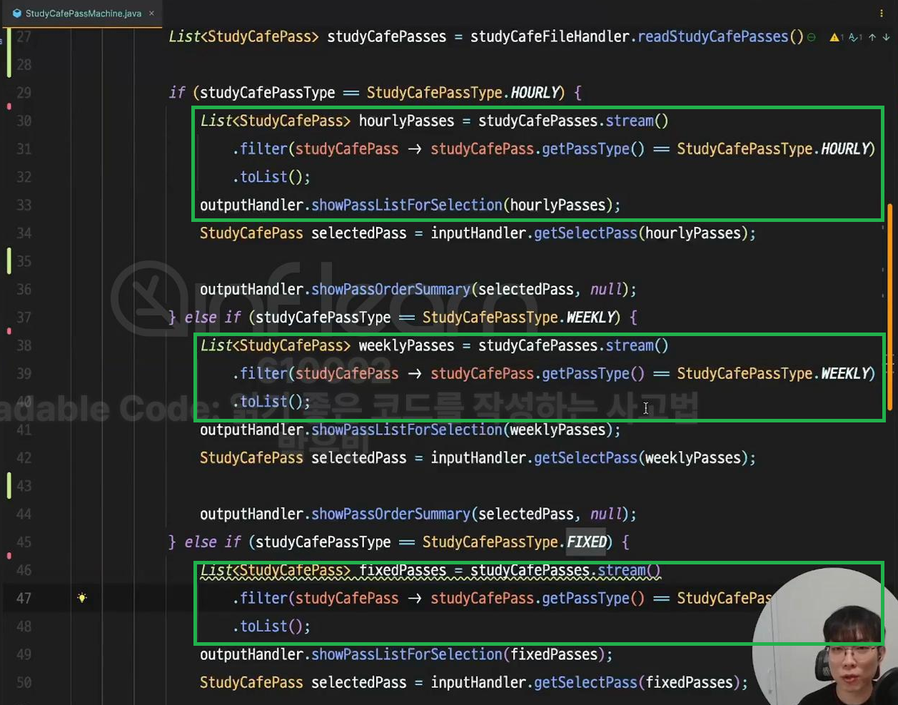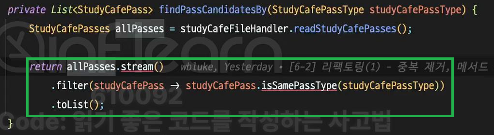 - 패스권을 얻어오기 위한 일련의 과정을 메서드로 추출하자.