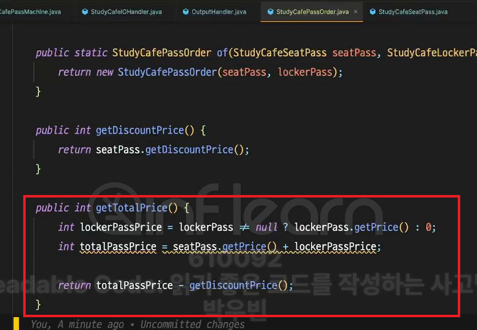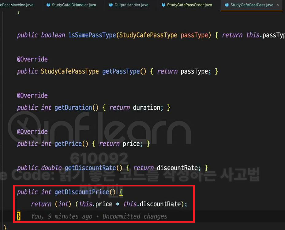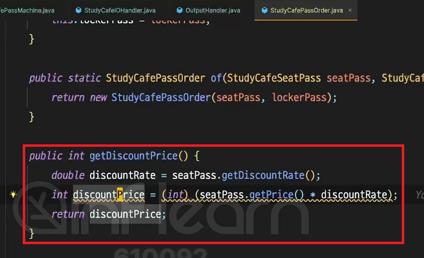 - DiscountPrice()의 로직들은 seatPass의 것이다.