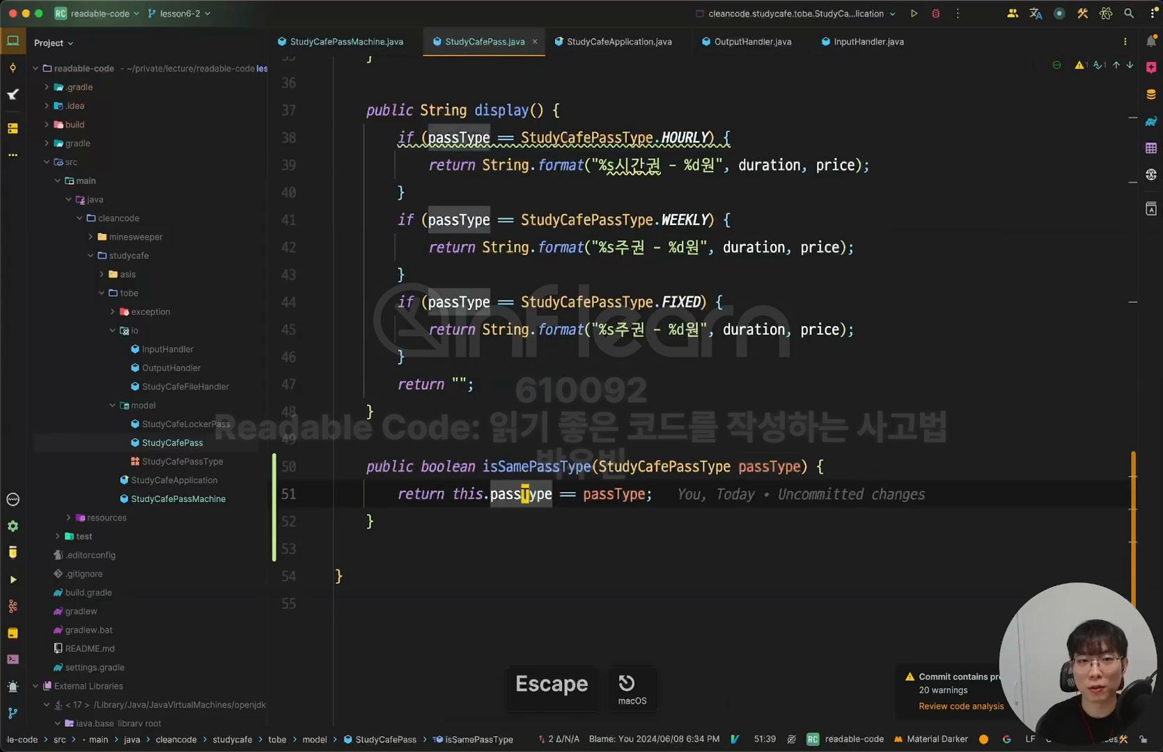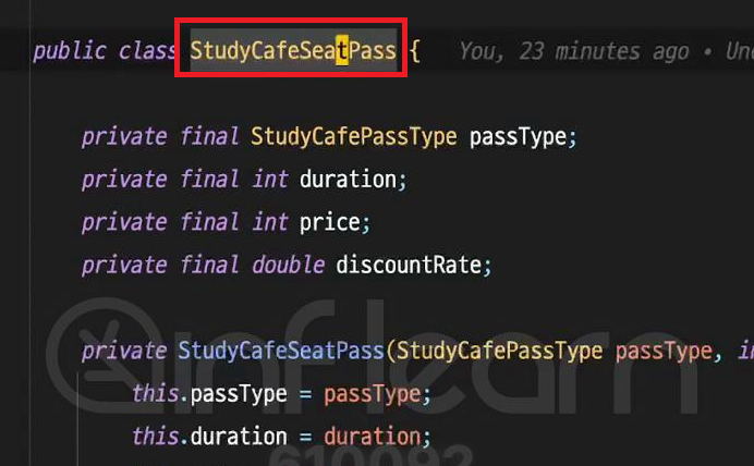 - 스터디 카페 패쓰라는 이름을 인터페이스 이름으로 사용하고 싶기 때문에 기존에 사용하고 있떤 스터디 카페 패쓰를 좌석 이용권 즉, 스터디 카페 시트 패스로 변경해보자.