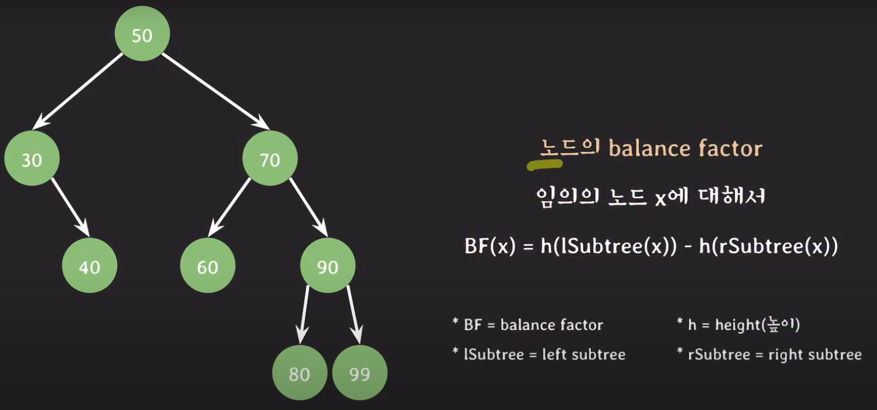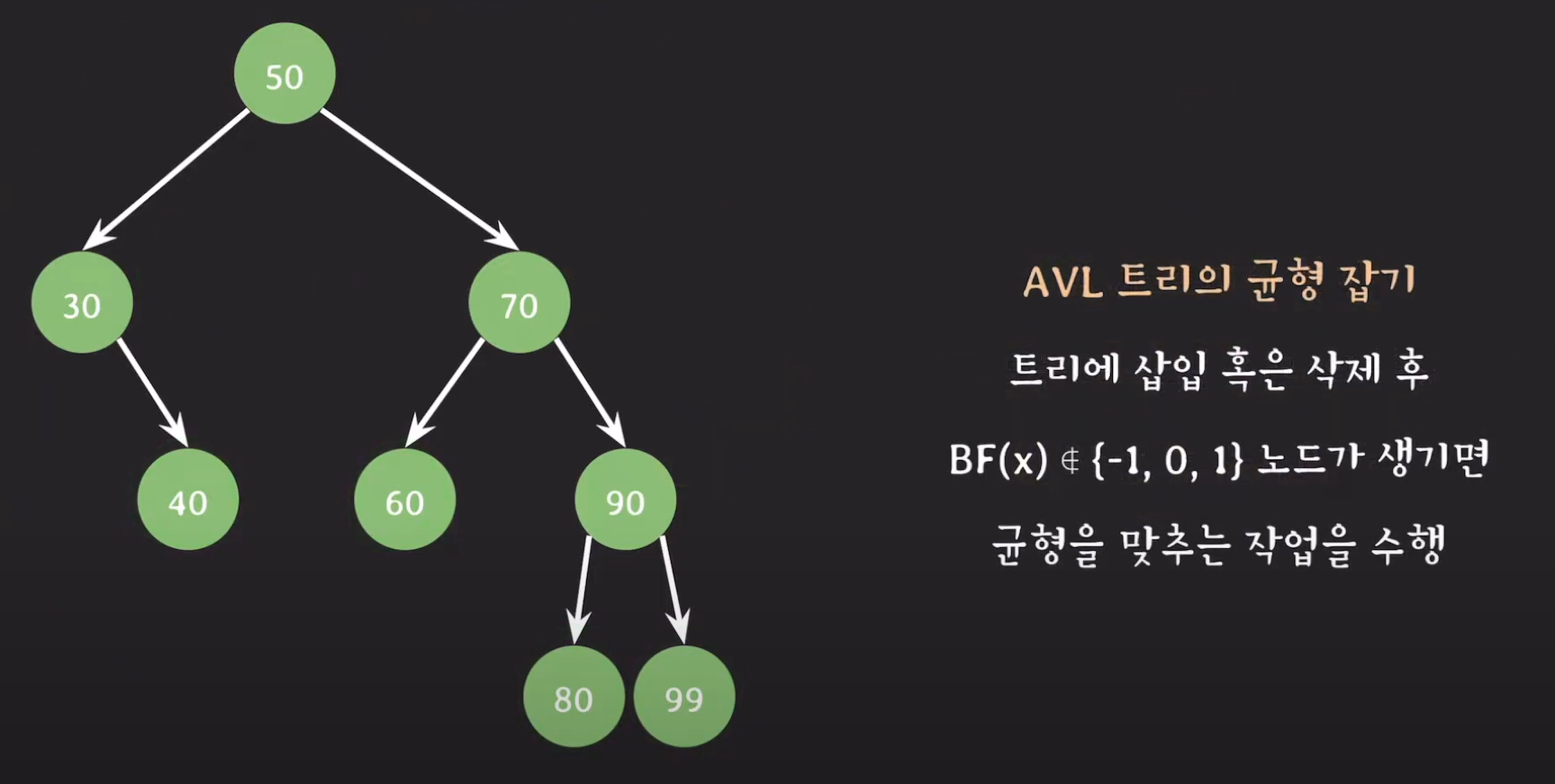 지난 시간에 배웠다시피 균형이 잡혔다는 것은 오른쪽 서브트리와 왼쪽 서브트리의 높이 차이가 1이하일 경우 균형 잡힌 트리였습니다.