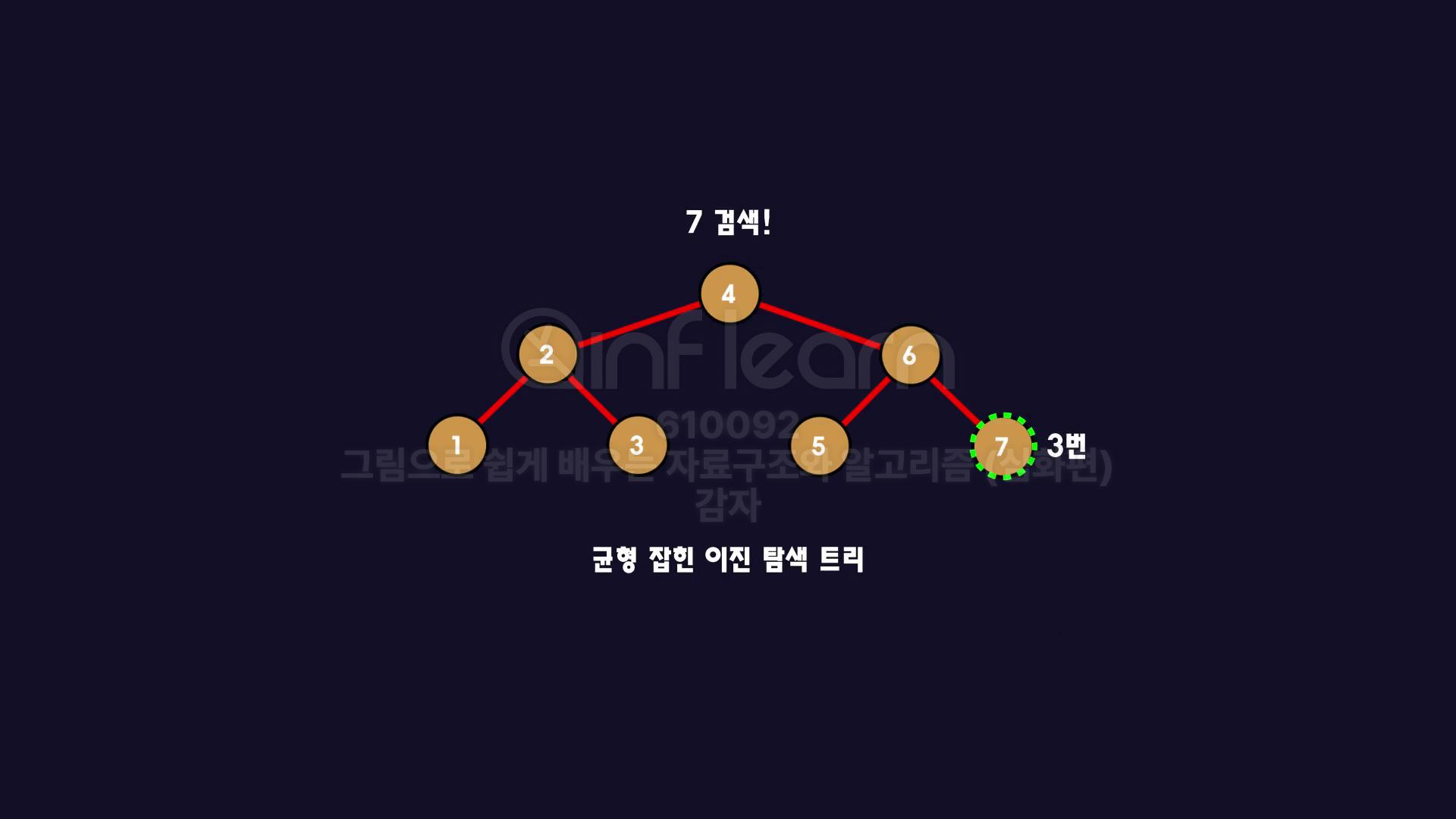 만약 균형 잡힌 이진 탐색 트리였다면 7을 검색하는데는 3번 즉 logn의 시간복잡도를 갖게 됩니다.