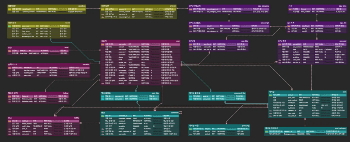 - ERD 작업을 진행할 때, 관계를 어떻게 설정할 건지에 관해서 정말 많은 토의를 했다.