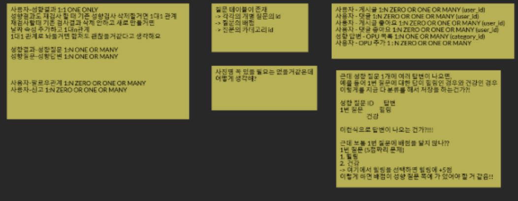 - 이런식으로 ERD를 만들고, 그에 관한 피드백이나 생각들을 메모에 적으면서 열심히 수정을 진행했다.