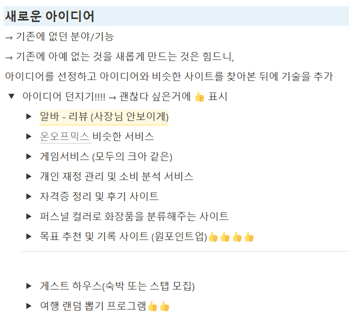 - notion을 이용해 각자 생각하는 아이디어 적기