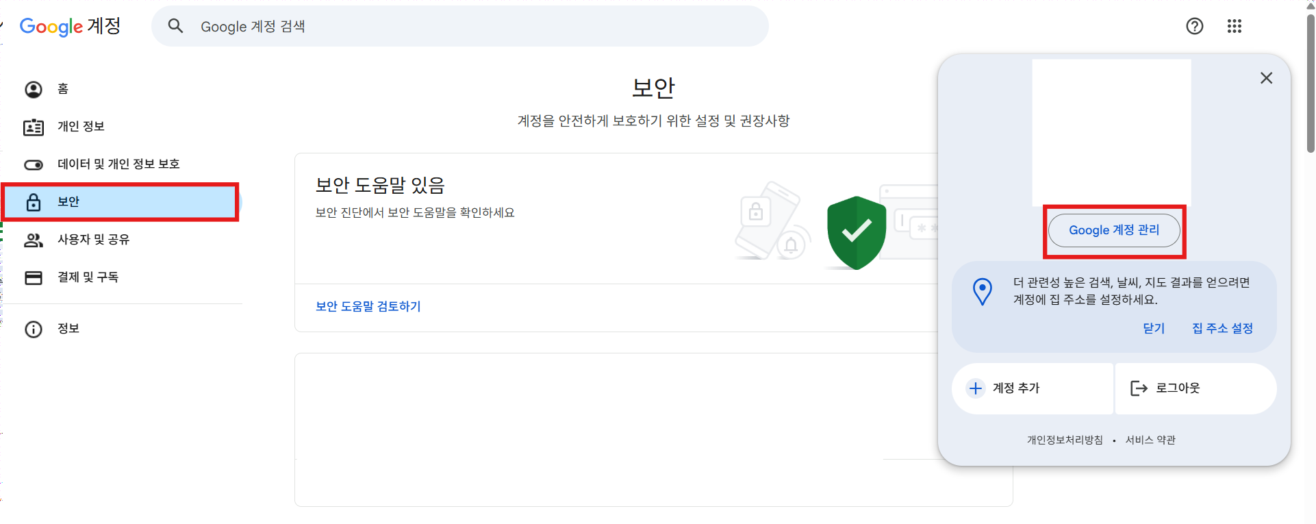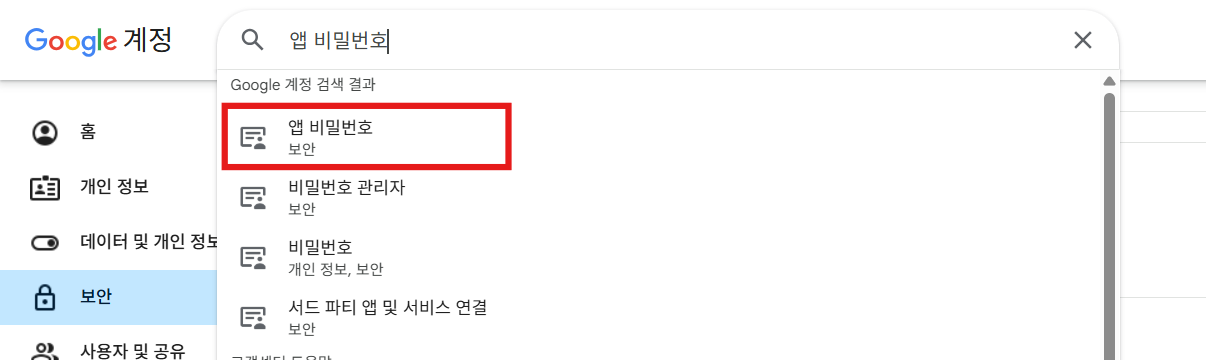 밑에 내용은 구글에서 비밀번호를 설정하는 방법을 쭉 설명한 것이다.