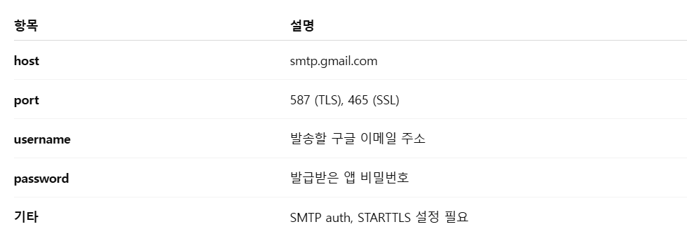 ✅ 구글 Gmail SMTP를 사용하려면 앱 비밀번호를 발급받아야 한다.