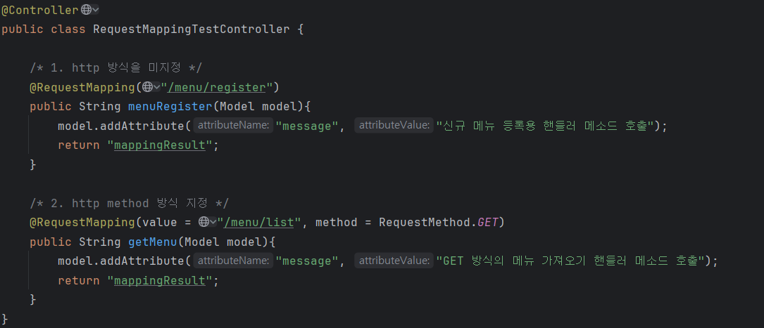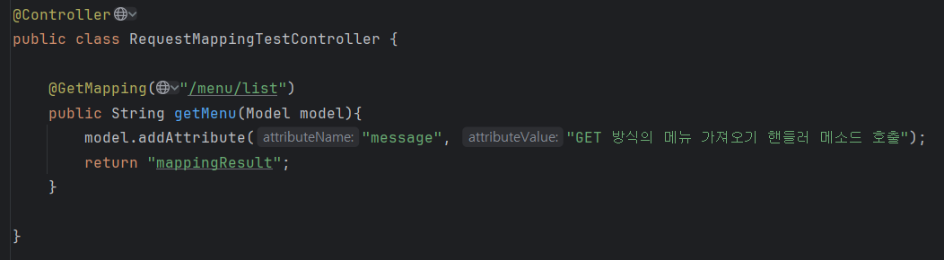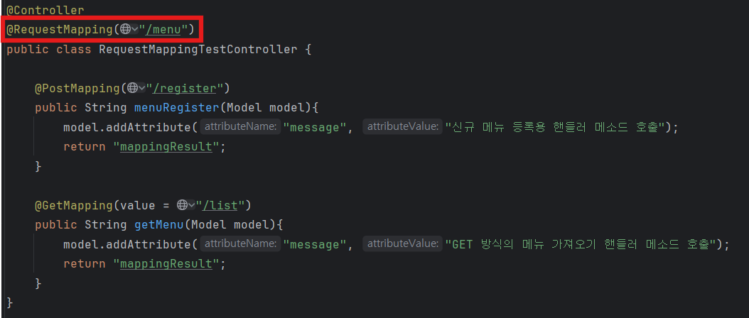 위의 사진처럼 @RequestMapping 어노테이션을 사용할 수 있다.