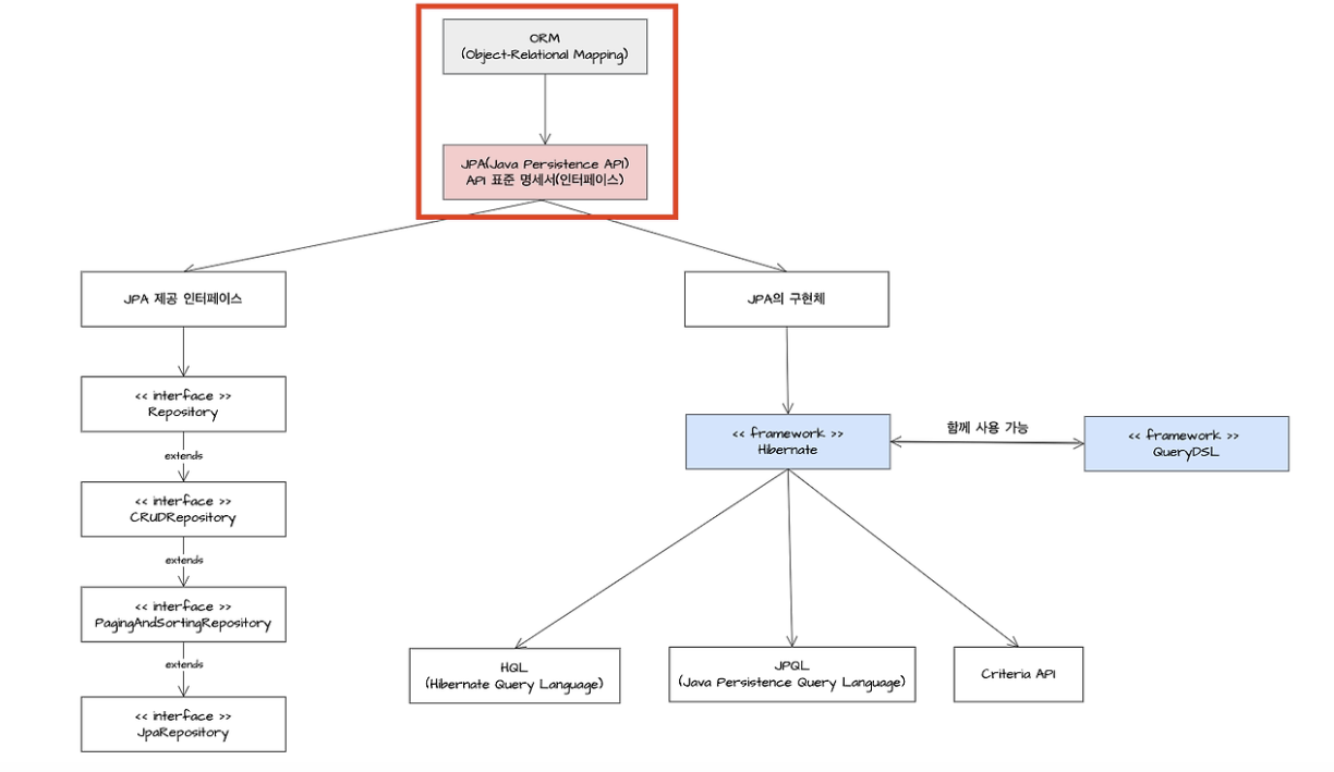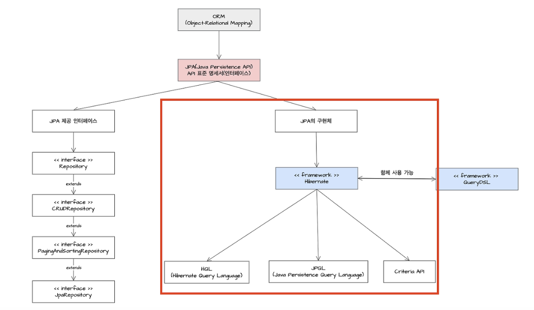 출처 : [Java/JPA] Spring Boot Data JPA 이해하기 -1: ORM, JPA, Hibernate, QueryDSL 이론